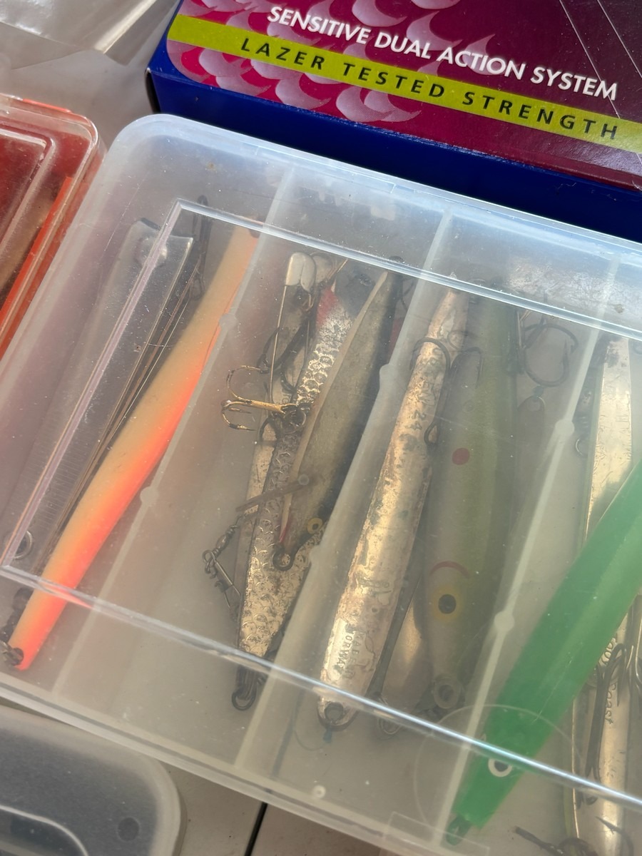 Stort parti fiskeudstyr dele, mm. mange stk. Fremstår i pæn stand. Fra dødsbo