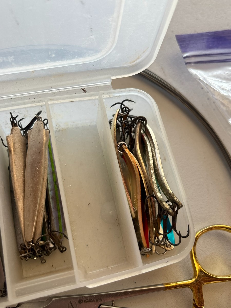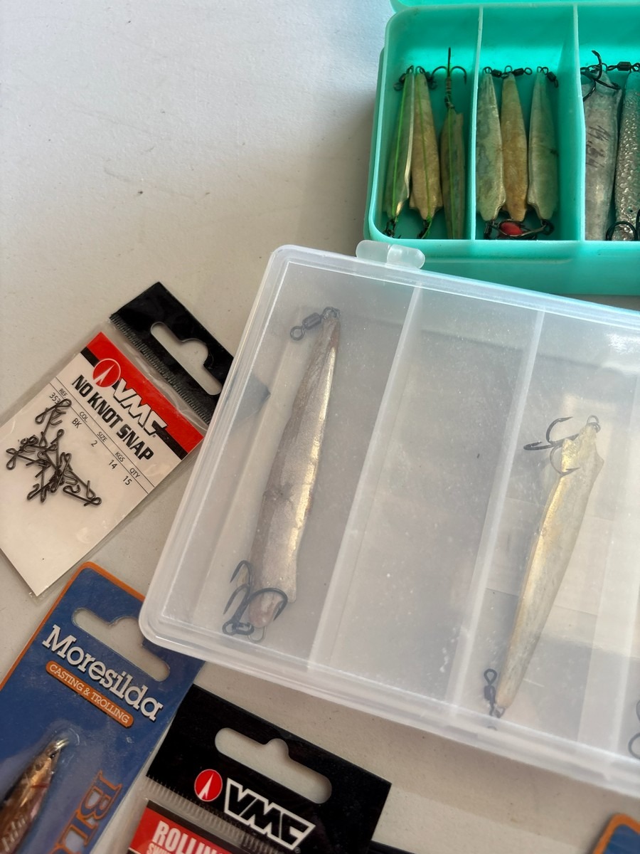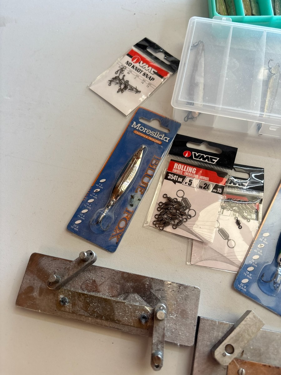 Stort parti fiskeudstyr dele, mm. mange stk. Fremstår i pæn stand. Fra dødsbo