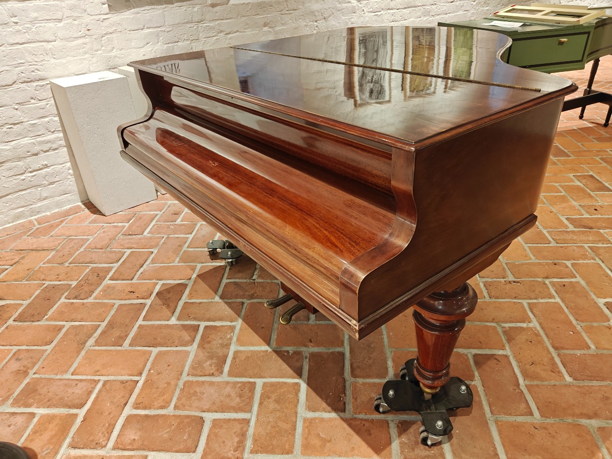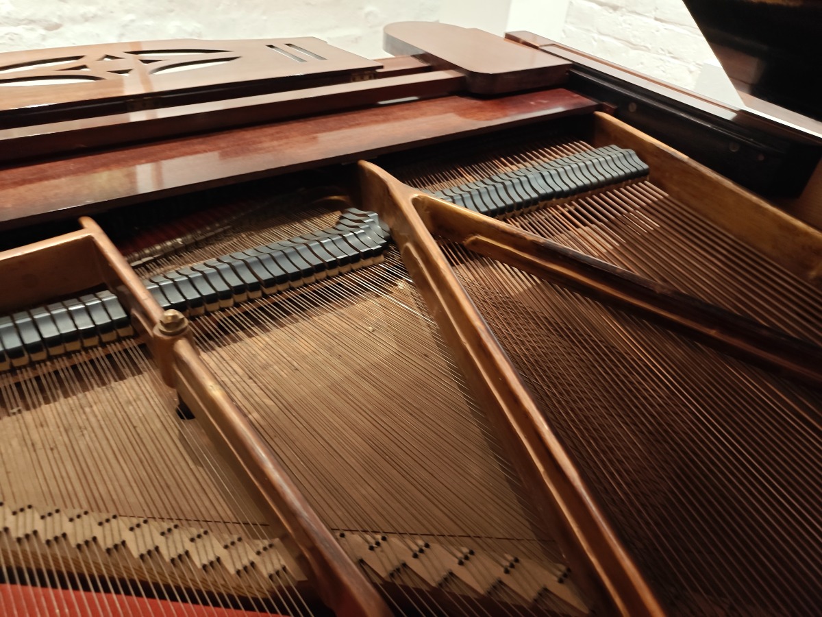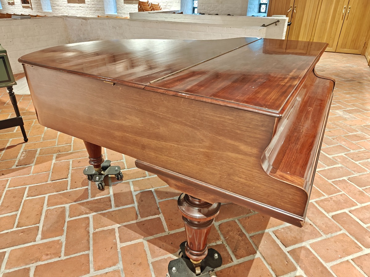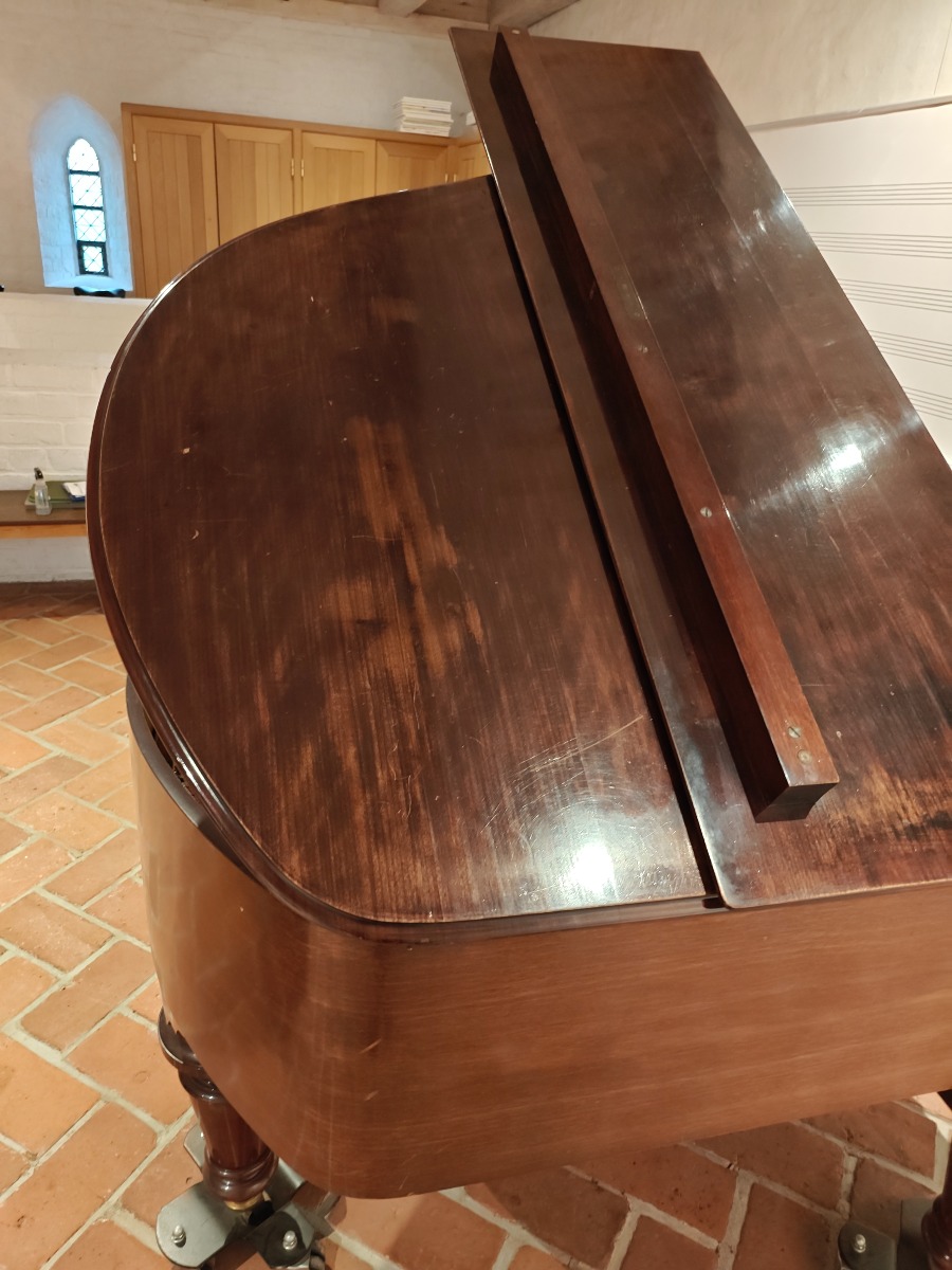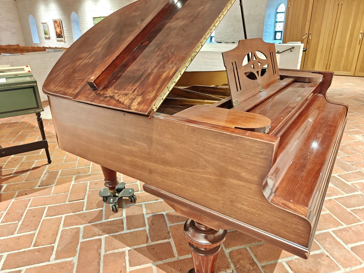 Brunt flygel.af Andreas Christensen, København. Fuld funktionsdygtig og smuk klang. Med nr 1013 stemplet i. Den er flot i lakken og har brugsspor. Har en revne i bundstykket. Smukt og elegant flygel til det private og til institutionen. Brugt. Står på 1. sal med trapper. Benene kan afmonteres og den kan flyttes af flere stærke personer.