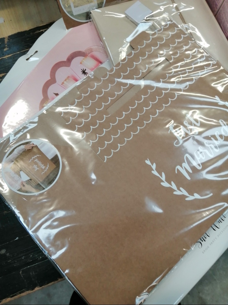 Forskellige genstande til polterabend for bruden. Se billeder. Varerne stammer fra lukket webshop. Alle varer er ubrugte og af rigtig god kvalitet.