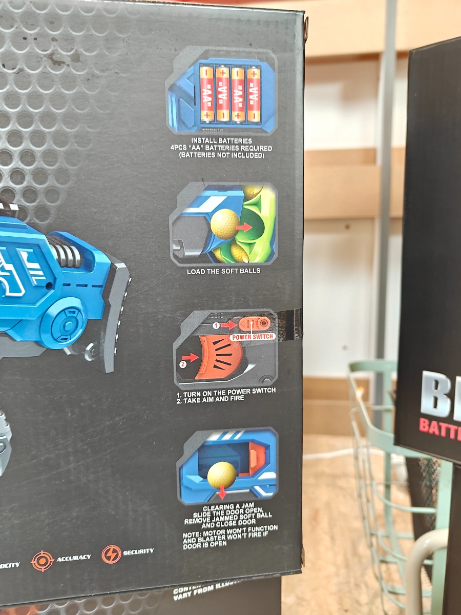Blaze storm batteridrevede softball guns, som skyder med skumkugler. Der er 12 stk. skumkugler med. Ubrugt og i original emballage