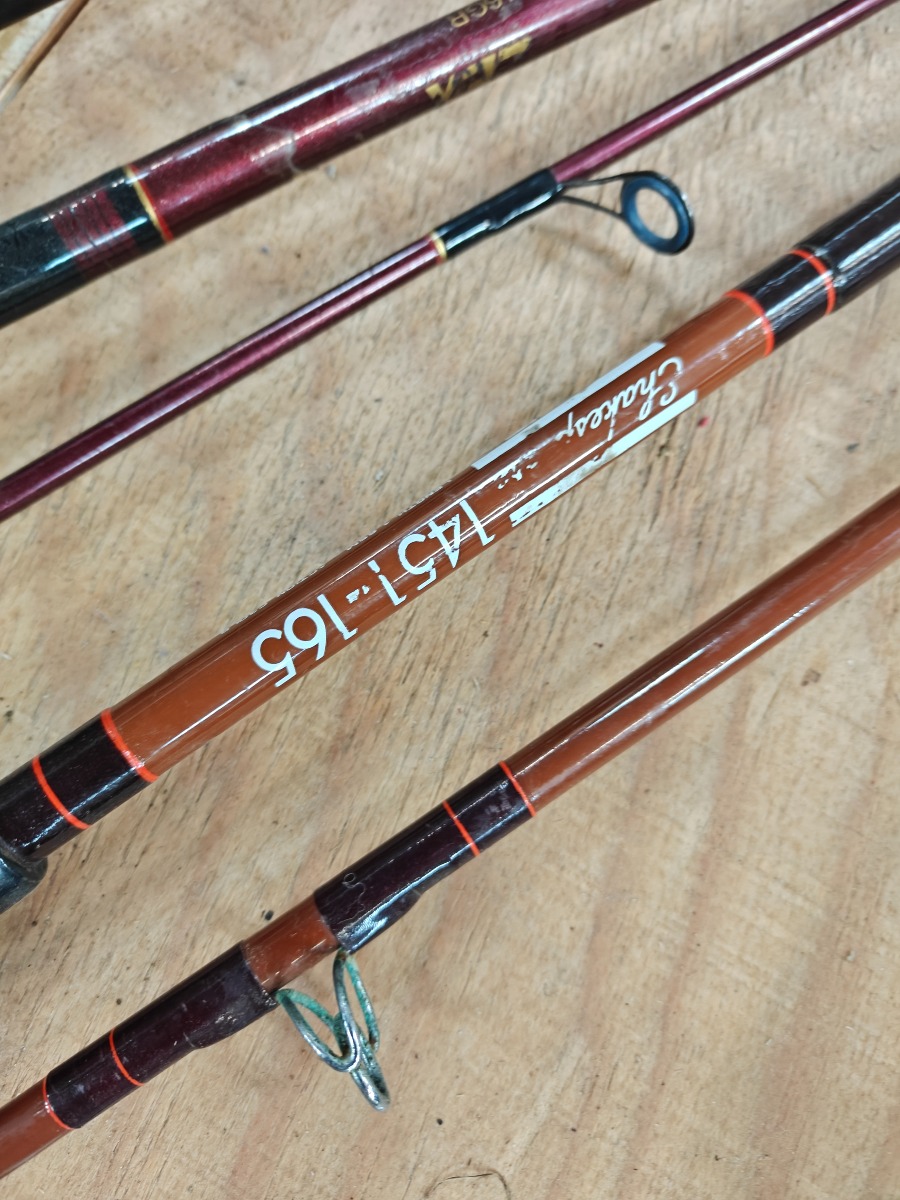 Forskelligt fiskegrej. Bestående af lidt grej og 6 stænger. Daiwa og andre mærker.