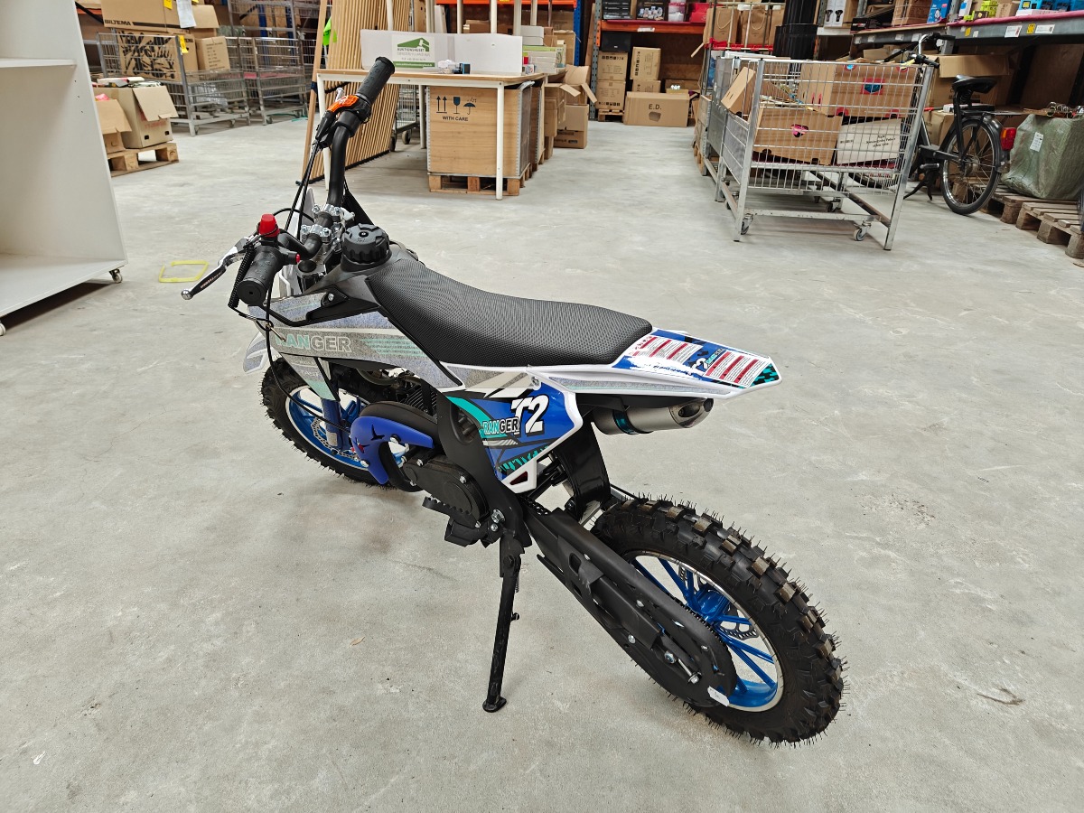 Crosser / dirtbike - 49cc og 10 tommer. Automatisk gearskifte. Med afbryderarmbånd, som stopper motorcyklen i tilfælde af fald. Motor: 1 cylinder / 2 takt. Køling: luft. Hastighed: 45 km/t. Mål: H: ca. 60 cm til sæde & ca. 130 cm i længde. Usamlet, ubrugt.