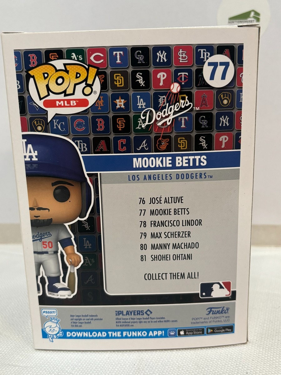 Funko Pop Dodgers Mookie Betts (77). Fra rygerhjem og kan have en snært af røglugt eller tegn på æsken
