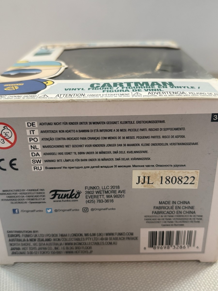 Funko pop South Park Cartman (17). Fra rygerhjem og kan have en snært af røglugt eller tegn på æsken