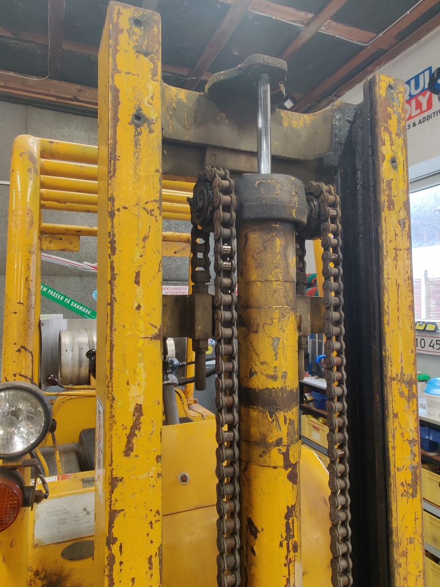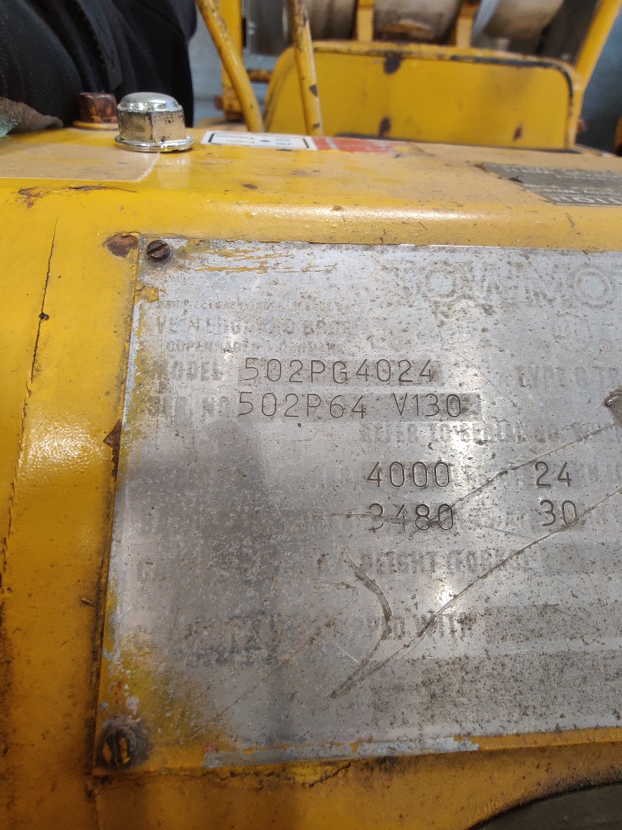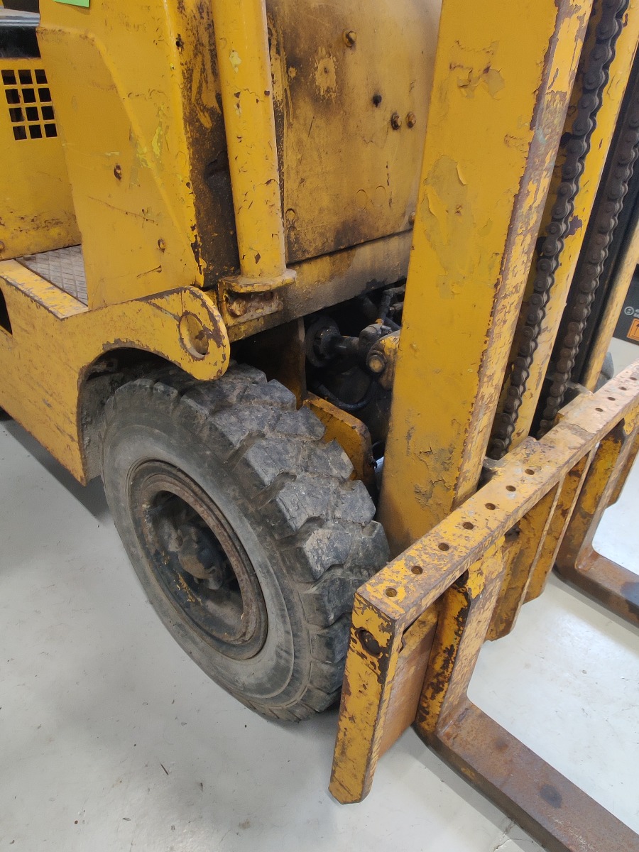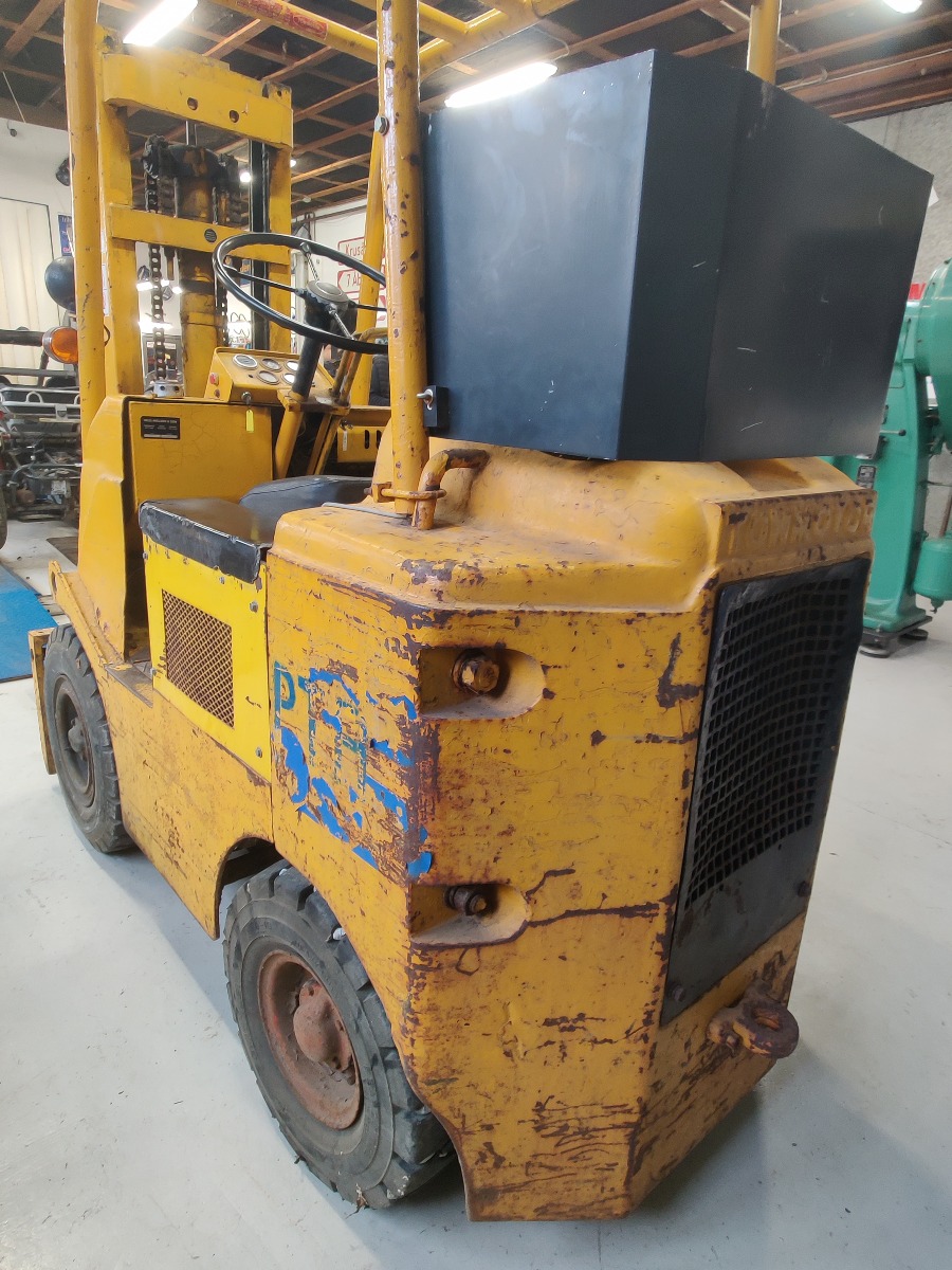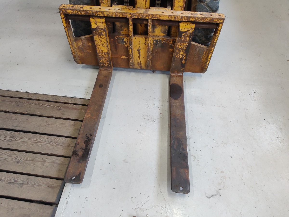 Towmotor gas gaffeltruck model: 502PG4024 oplyst løftekapacitet på ca. 1800 kg 2-trins tårn med en løftehøjde på ca 3,3 m maskinen, har kørt 6353 timer starter og kører upåklageligt står uden buler eller store skrammer kun lidt patina af tidens tand. Årgang er ukendt men maskinen er produceret i slutning af 60erne og 70erne