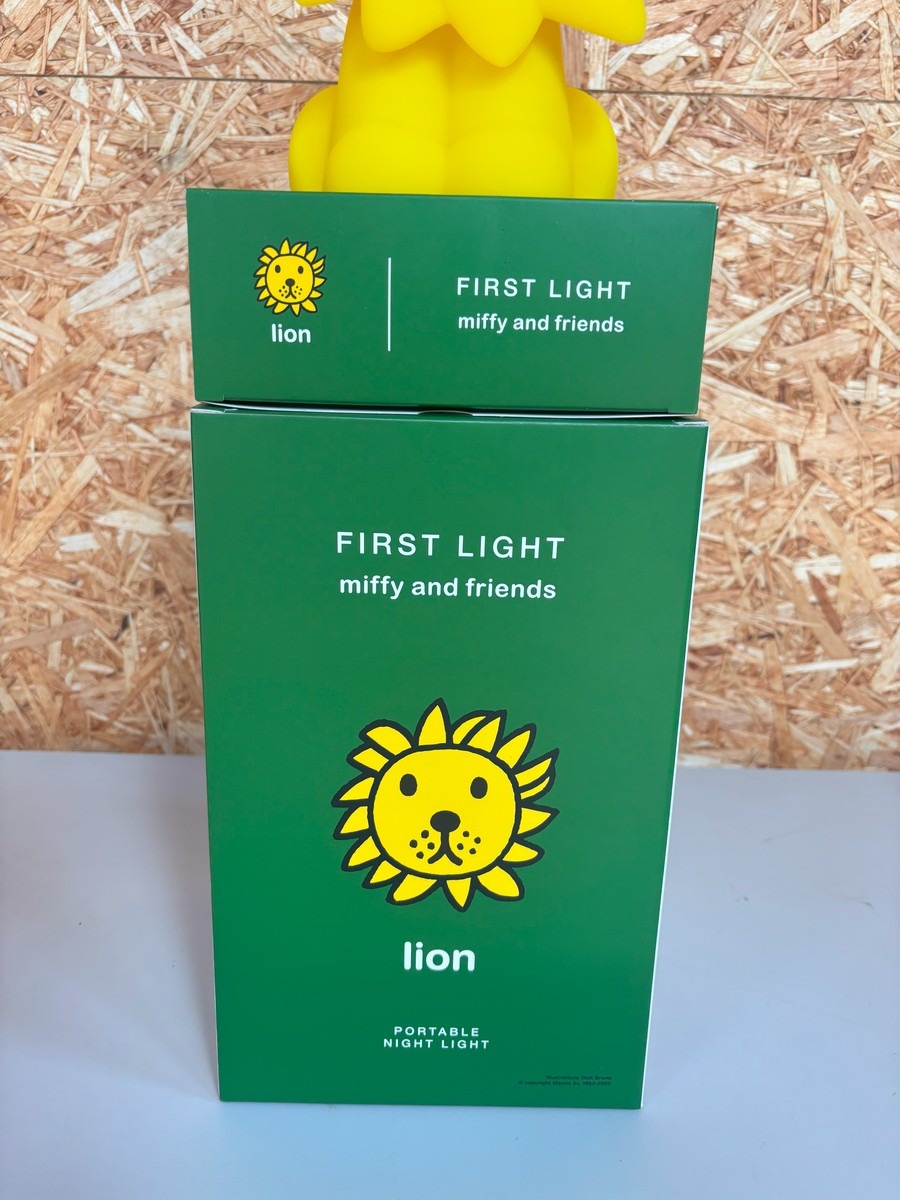 2 stk. Lion First Light natlampe. Højde: 25 cm. Materiale: Højkvalitets BPA-fri silikone. 6 dæmpningstrin inkl. nattilstand. 8-120 batteritimer (afhængig af den valgte indstilling). Genopladelig med USB-C-kabel (medfølger). Samlet nypris ca. 1100,- kr. Kan nemt bruges med kun to knapper. Ubrugt og i original emballage