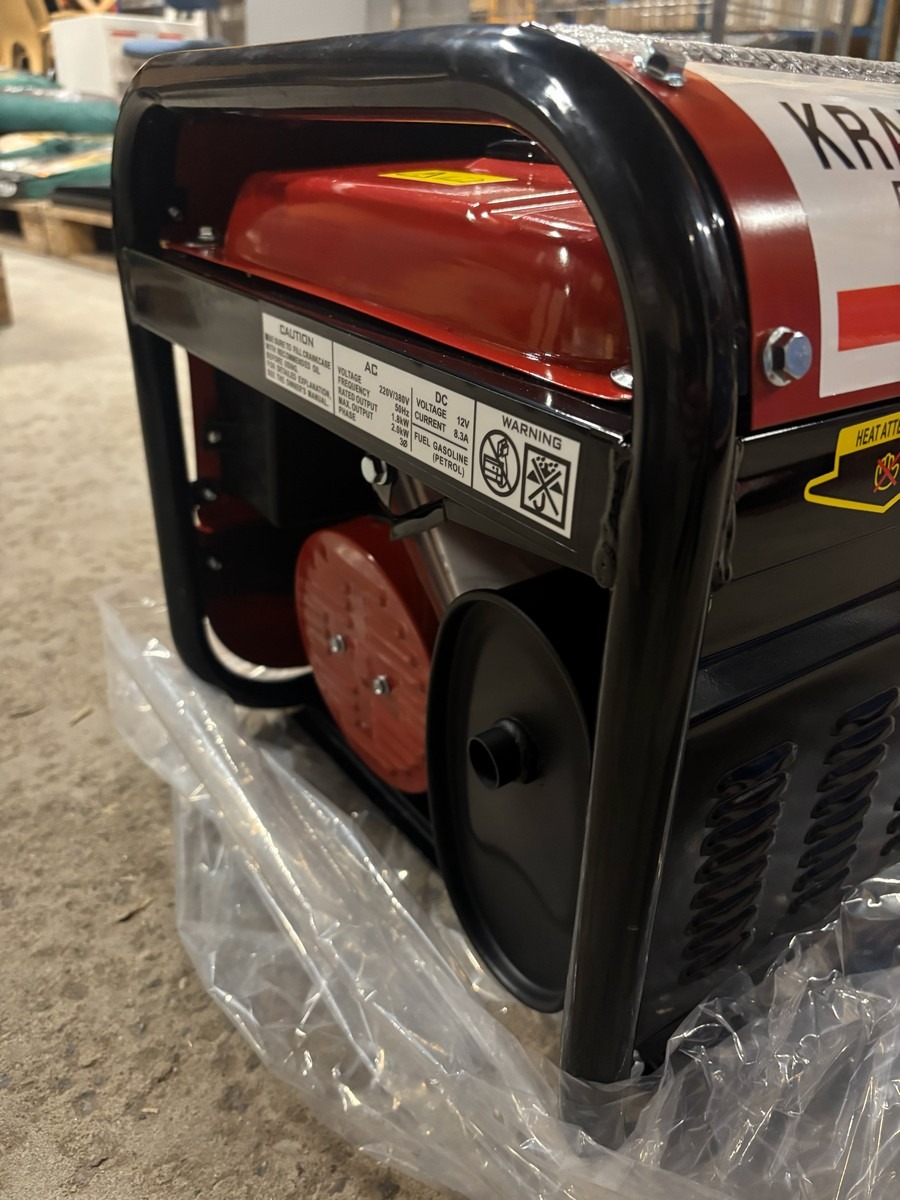 Kraftworld Benzin generator - KW8500. 1,8 KW. 50HZ. Vejer 40 kg. Silent model. Med 4 stk. (3 stk. AC220V og 1 stk. AC380V.) Den er ubrugt og i original emballage.