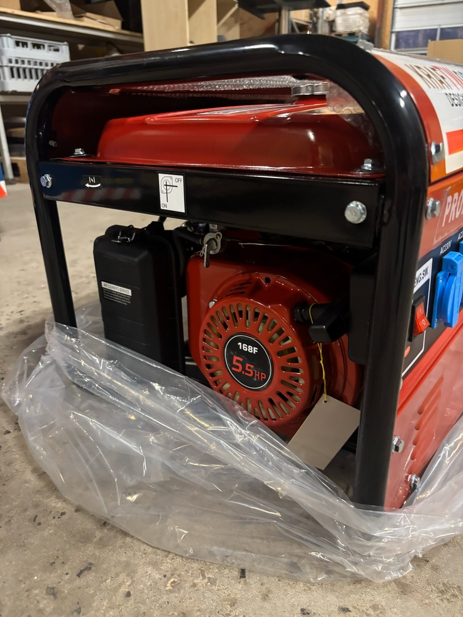 Kraftworld Benzin generator - KW8500. 1,8 KW. 50HZ. Vejer 40 kg. Silent model. Med 4 stk. (3 stk. AC220V og 1 stk. AC380V.) Den er ubrugt og i original emballage.