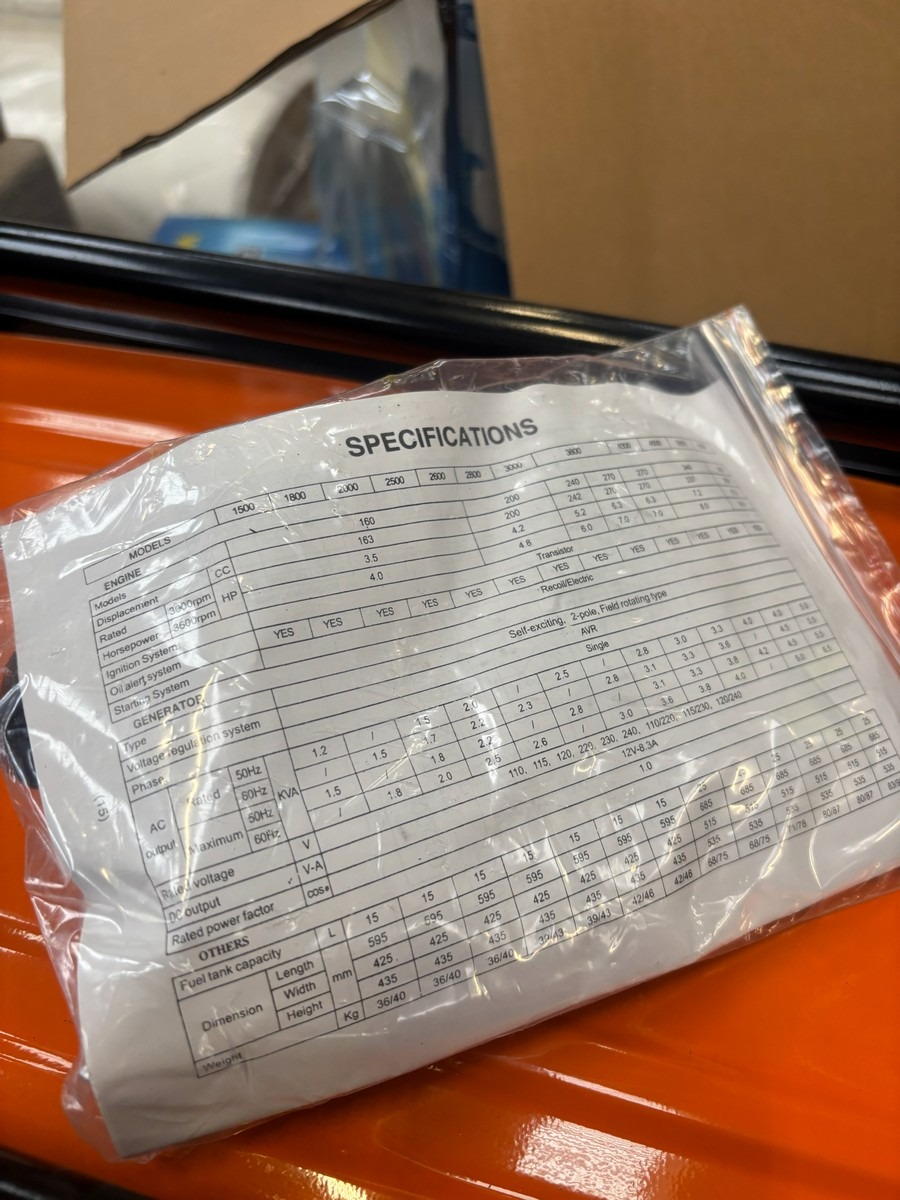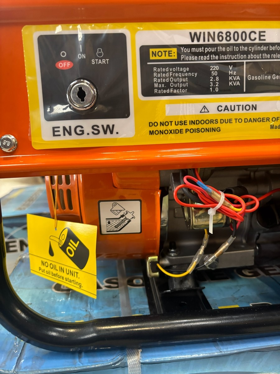 Benzin generator, 3.2 / 2.8 KVA. 220V. Vægt : 45kg. Model WIN6800CE. Ubrugt og i original emballage.