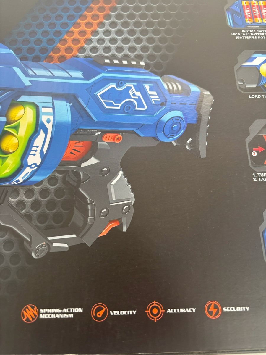 Blaze storm batteridrevet softball guns, som skyder med skumkugler. Der er 12 stk. skum kugler med til. Ubrugt og i original emballage