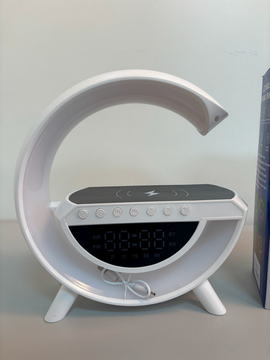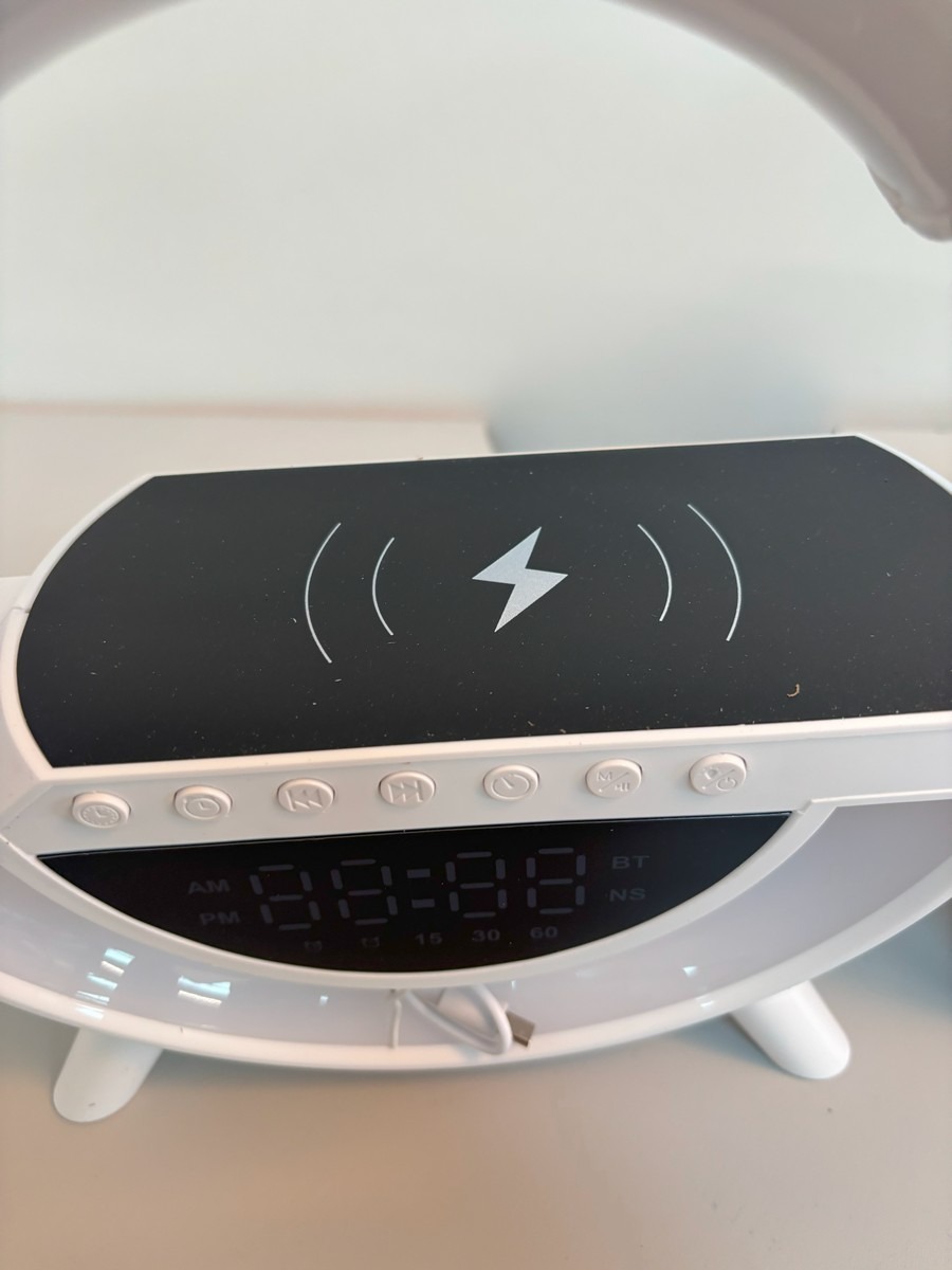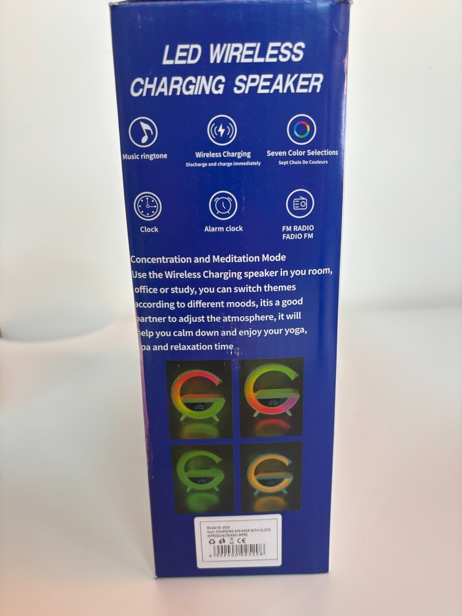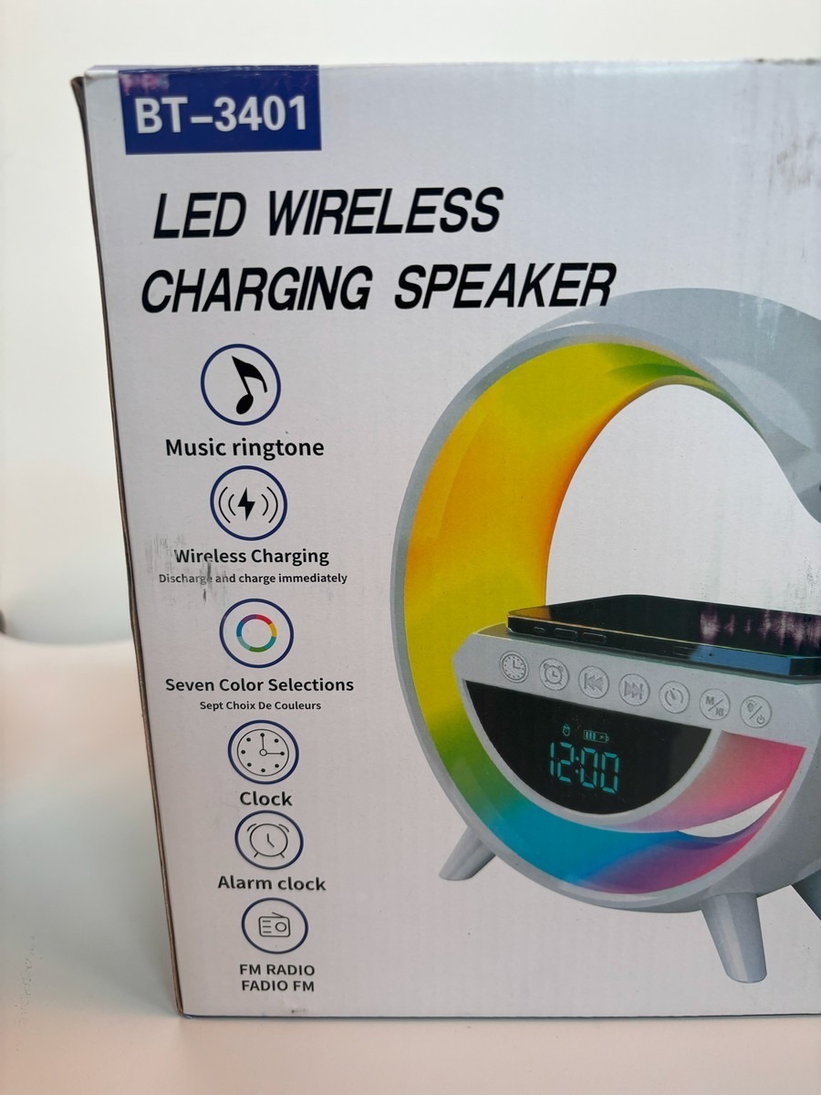 LED wireless charging speaker. Med trådløs opladning til din mobil, alarm, klokke, FM radio, mm. Ubrugt