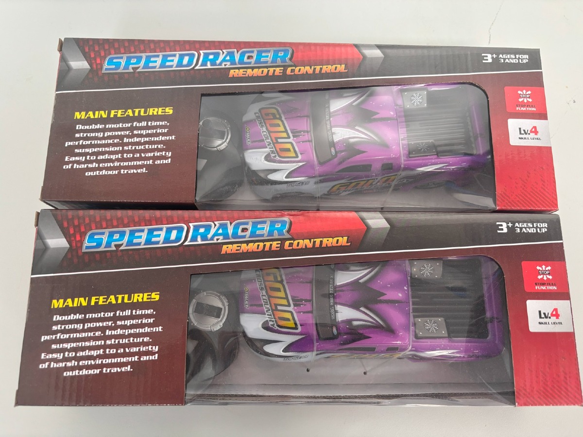 2 stk. Speedracer – fjernstyret bil. Kan køre fremad, tilbage og dreje til højre/venstre. Str. forhold 1:24. Af plast. Ubrugt og i original emballage