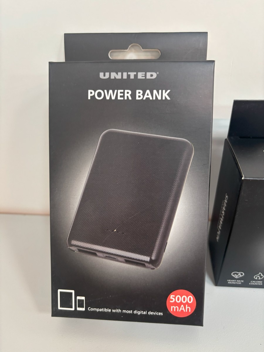 United Smartwatch & 5000mAH power banks. Ubrugt og i original emballage