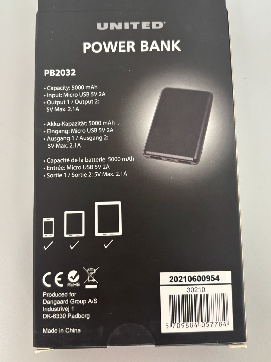 United Smartwatch & 5000mAH power banks. Ubrugt og i original emballage