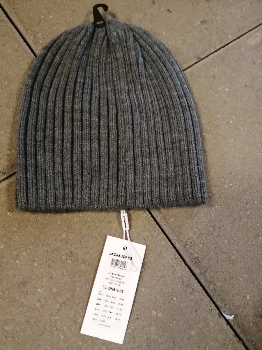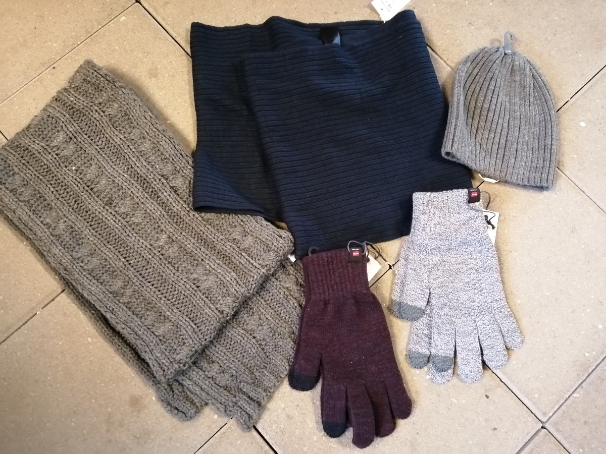 Grå hue (Jack&Jones), grå og bordeaux Jack&Jones handsker med touch, grå halstørklæde (Only and sons) og blåt tube halstørklæde (Jack&Jones). Ubrugte, stadig med mærker.