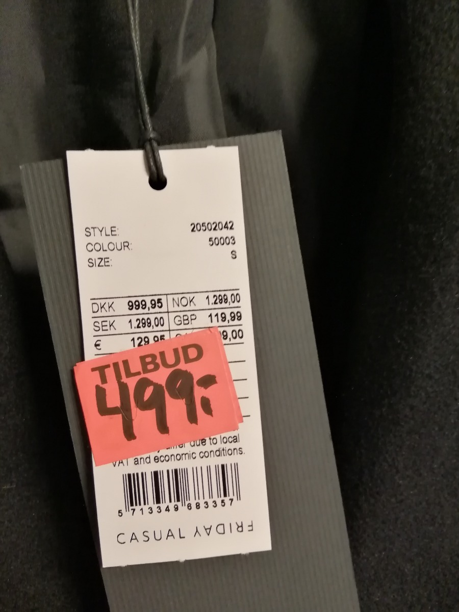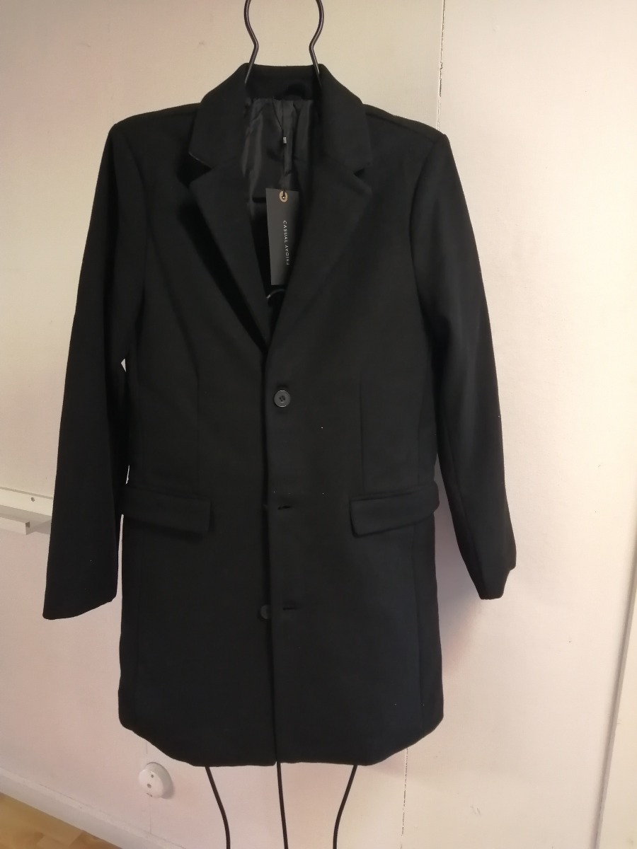 Sort jakke fra Casual Friday str. S. 70 % polyester og 30 % uld. Nypris 1.299 kr. Ubrugt, stadig med mærke.