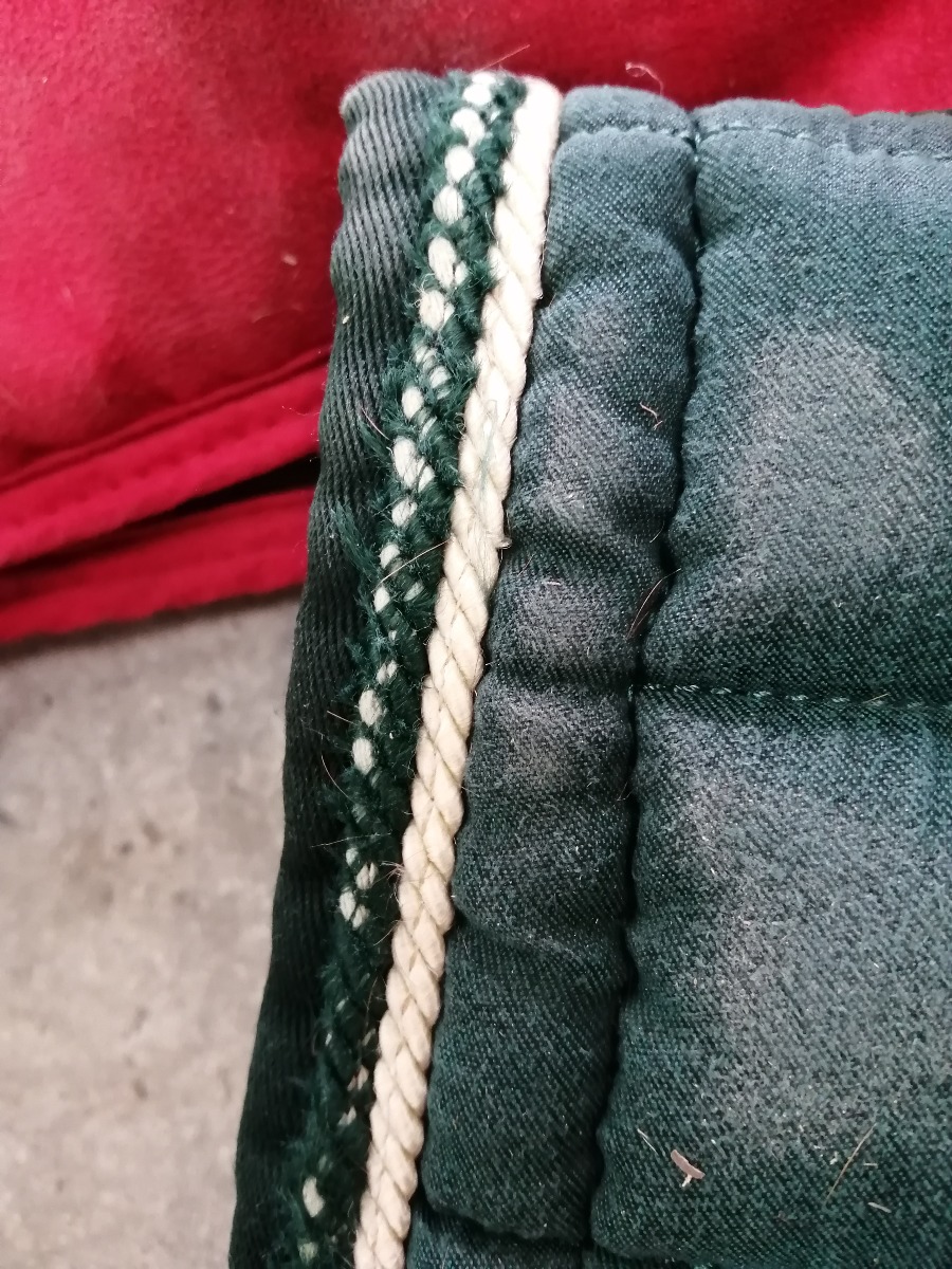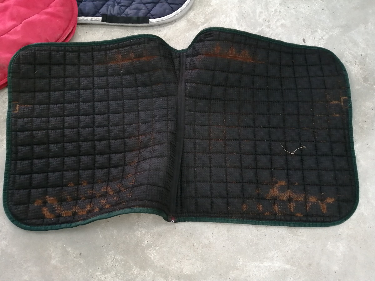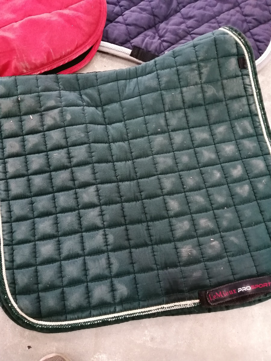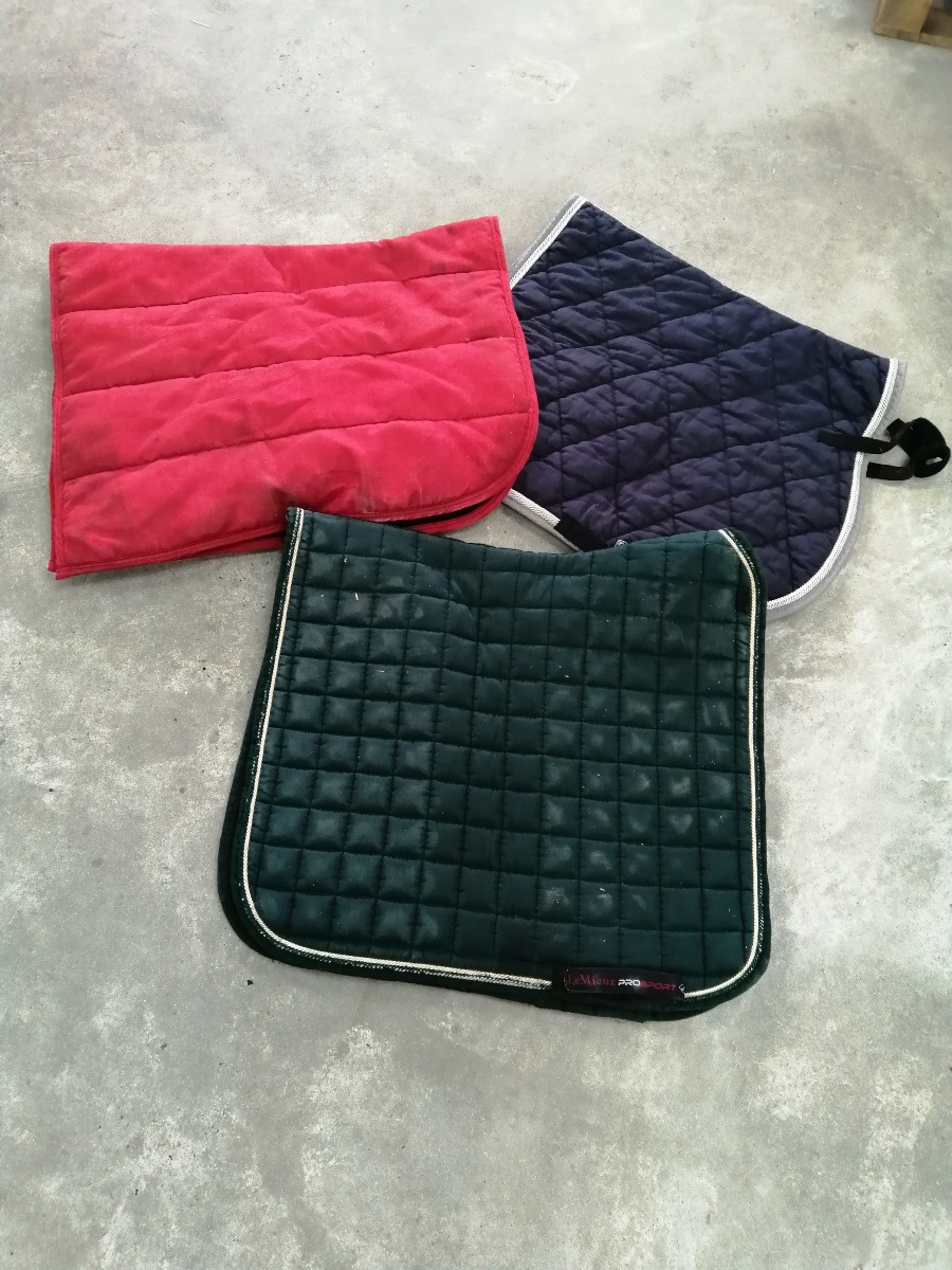 3 stk. sadelunderlag. LeMieux pro sports grønt underlag, str. L / DR. Blå sadelunderlag med hvid og grå kant. Catago rødt sadelunderlag, FULL. Brugte og trænger til vask.
