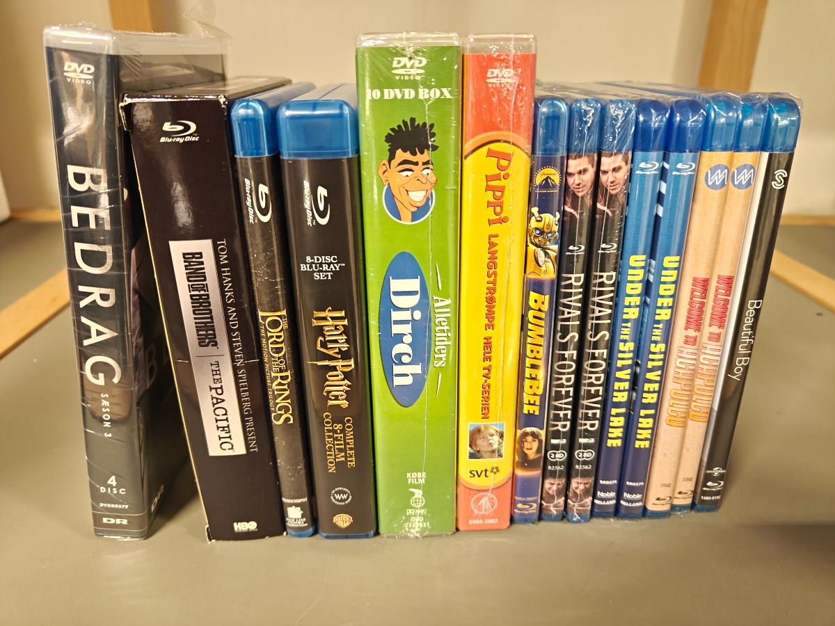 DVD og Blueray film. Mange forskellige titler. Flere med ubrudt embalage.