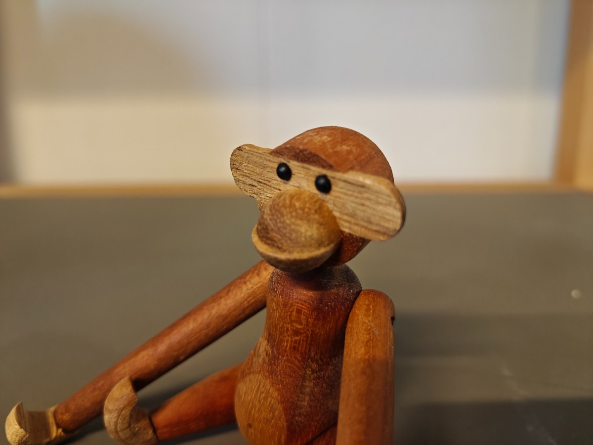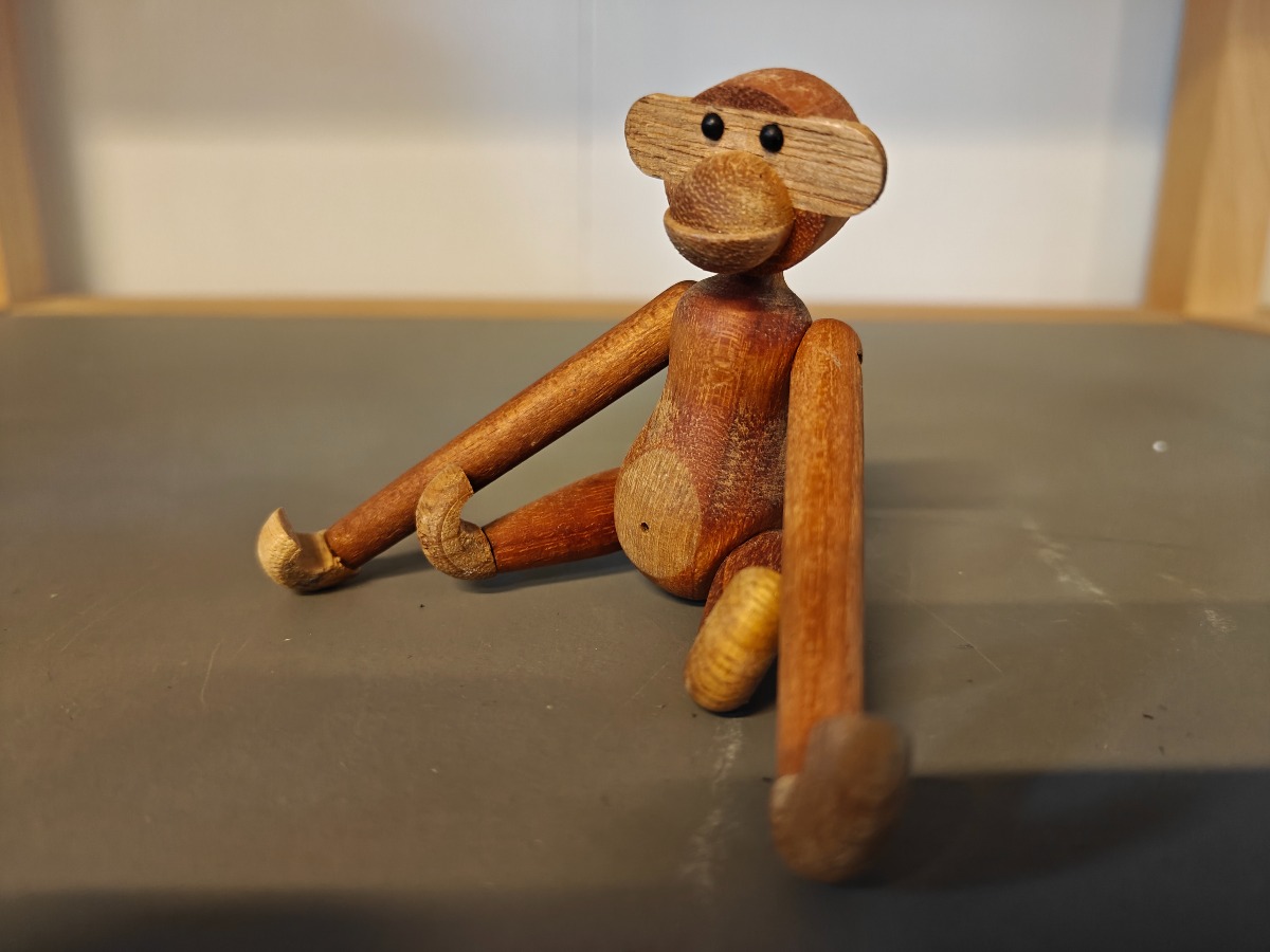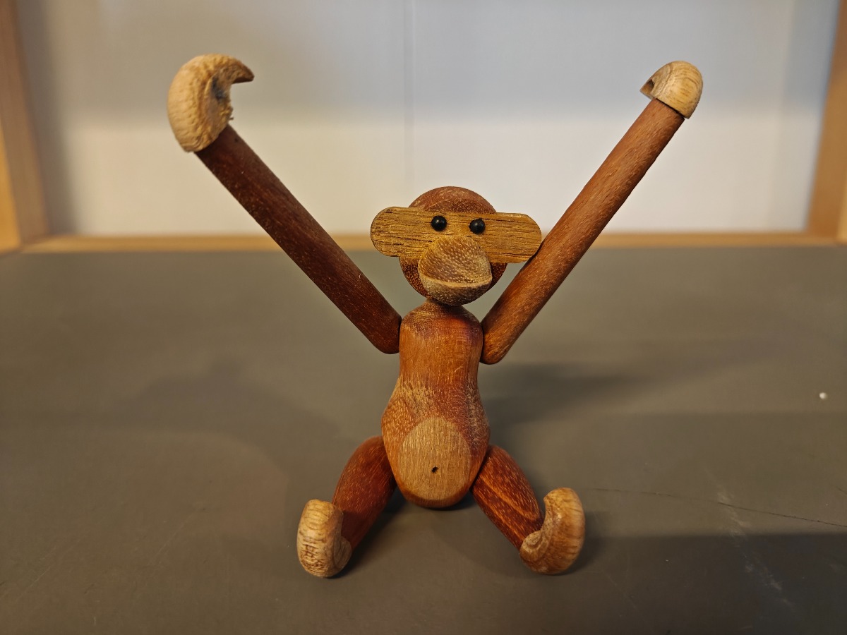 Kay Bojesen abe af teak og limbatræ. Lille model 9,5 cm. Fremstillet hos Rosendahl.
