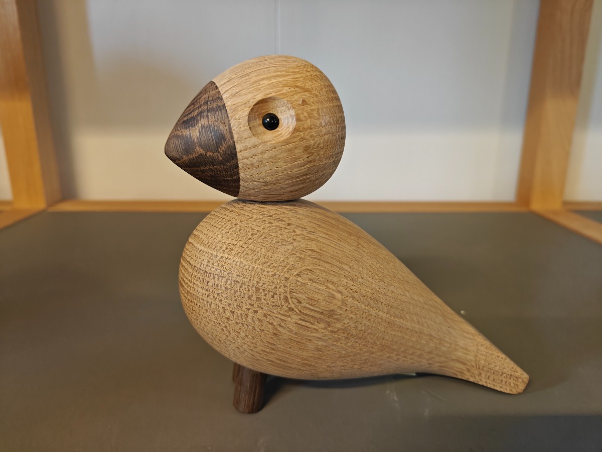 Kay Bojesen Alfred sangfugl af eg og røget eg. H. 15,5 cm. Fremstillet af Rosendahl.