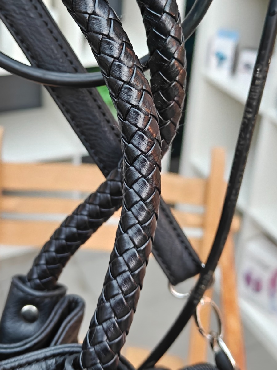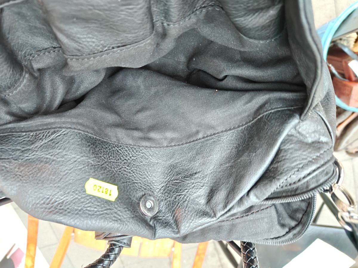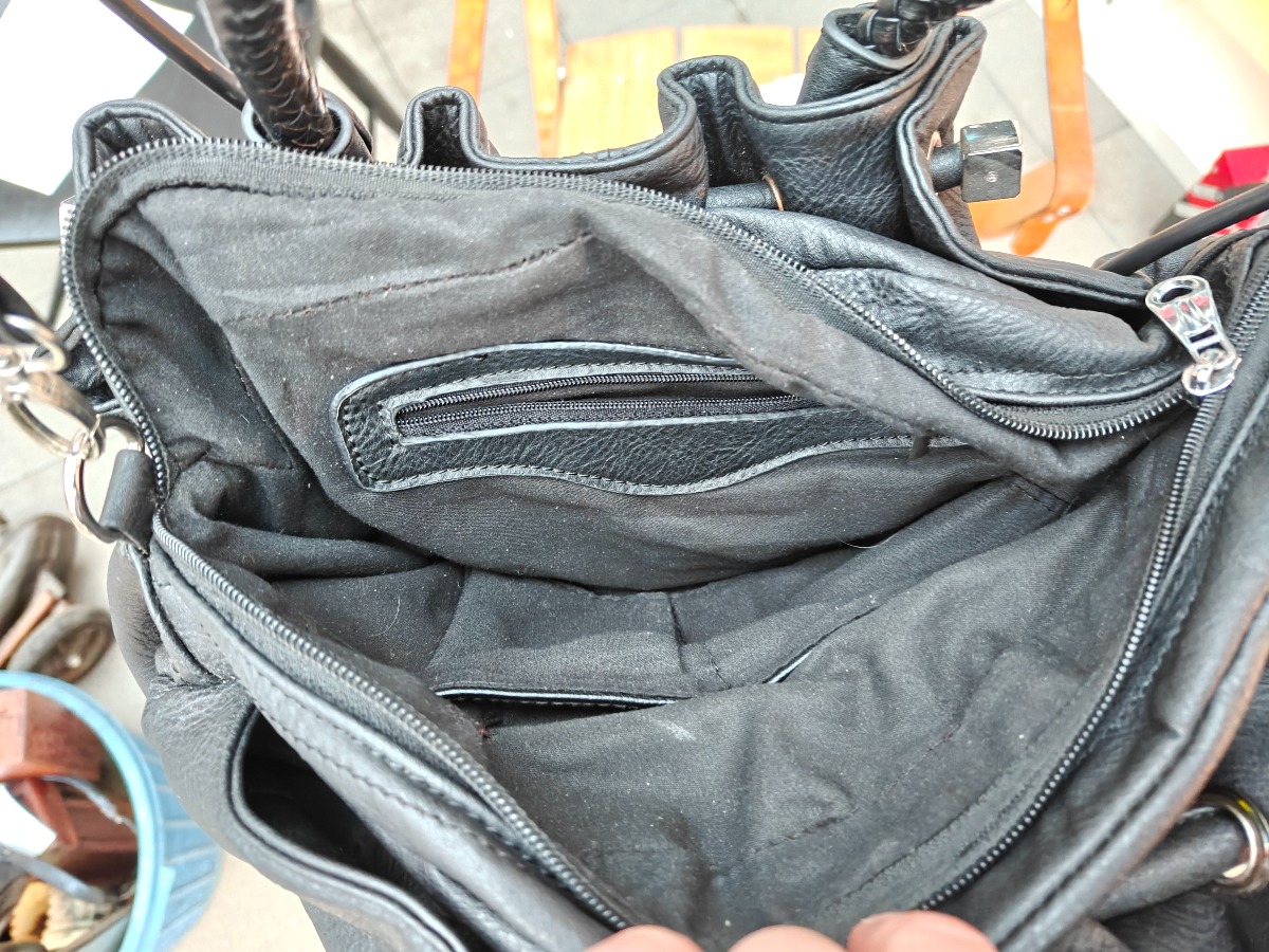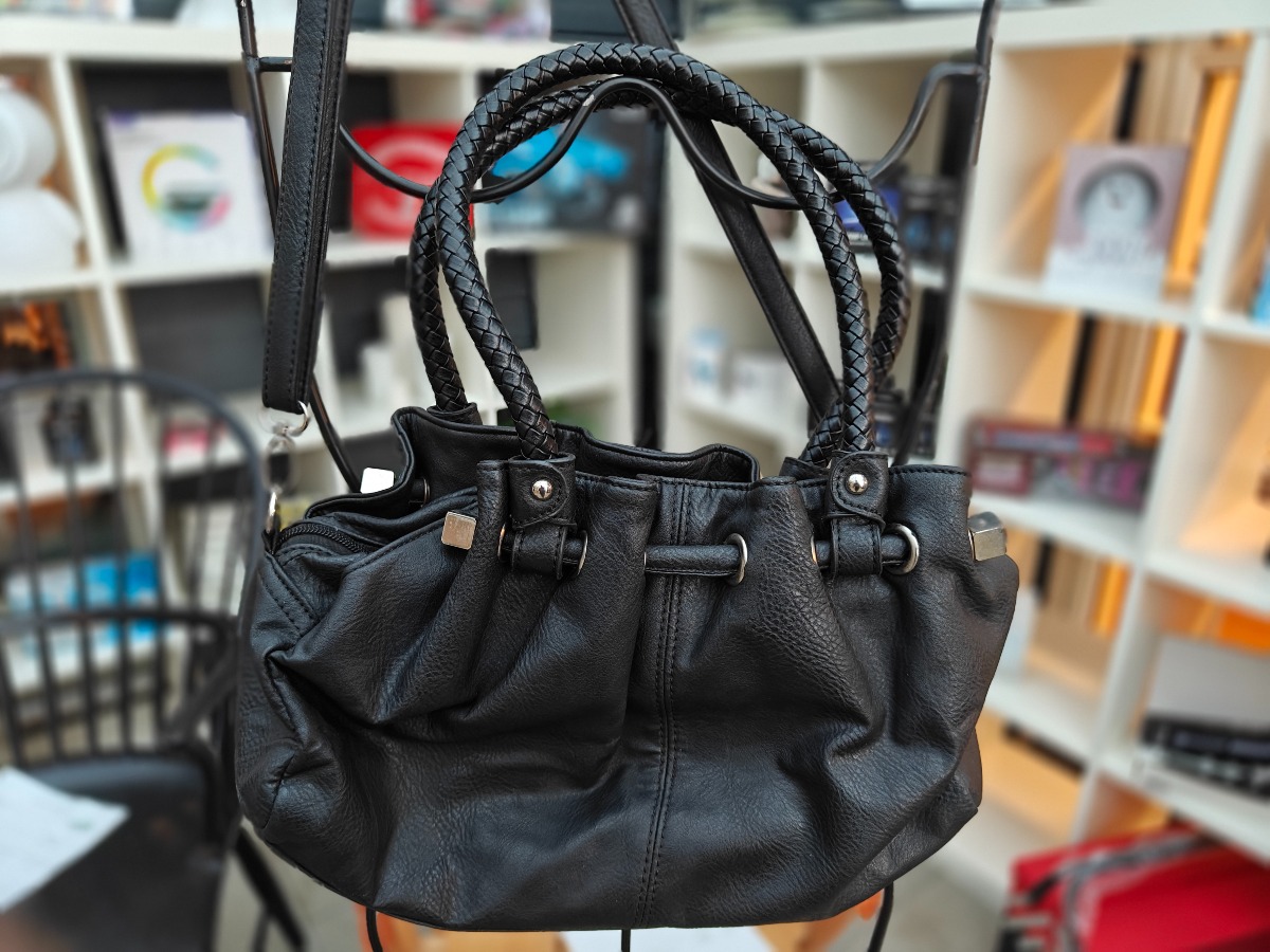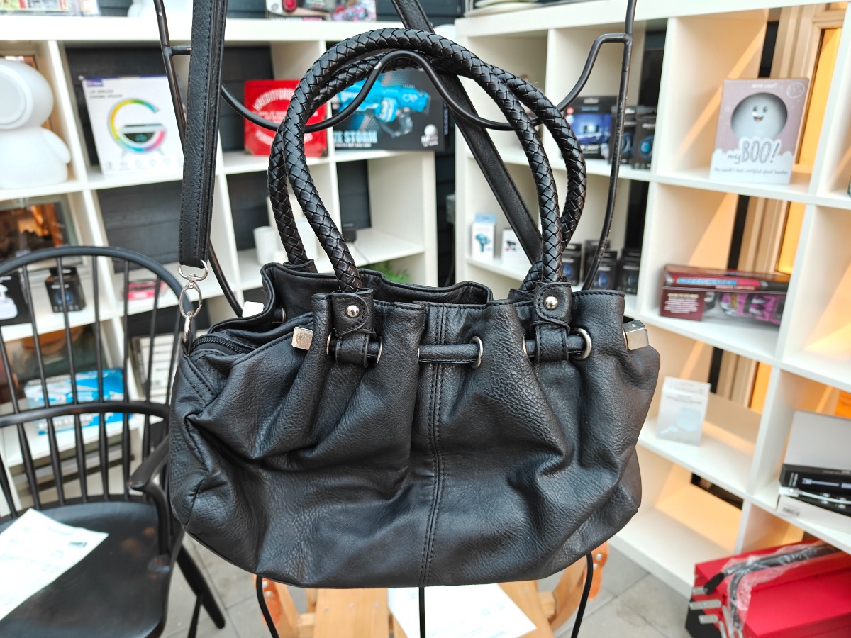 Prada håndtaske af sort læder. Indrettet med talrige rum. Aftagelig skulderstrop. Flettede greb på læderbeklædt metalstang. H. 23, B. 35 cm. Alm. let brugsslid.