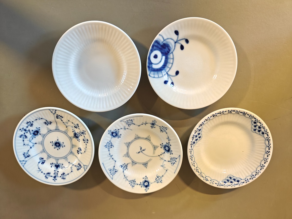 Royal Copenhagen Gifts With History. sæt på 5 tallerkner Ø. 11 cm. med forskelligt mønster. Nr. 612.