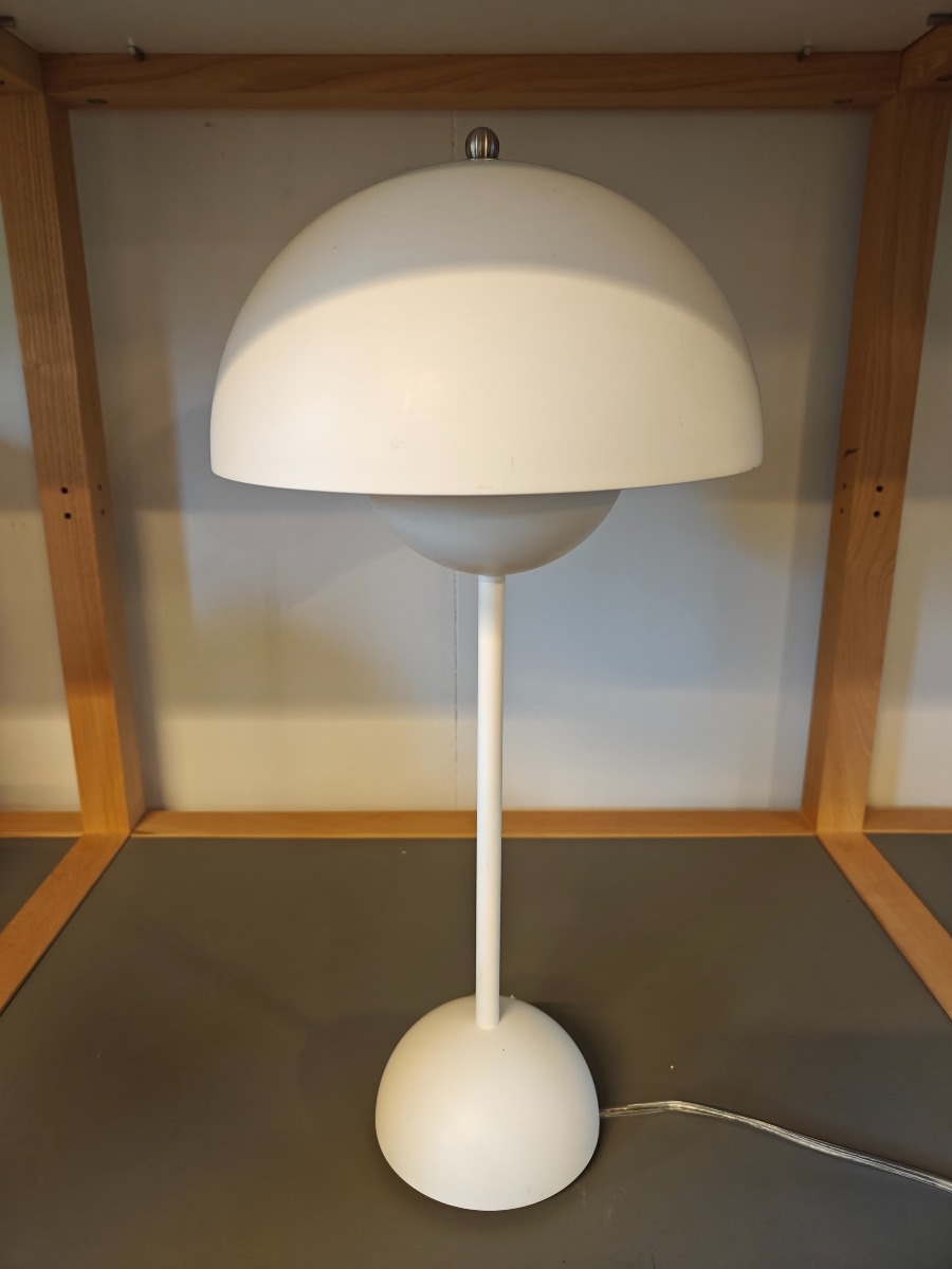 &Tradition Flowerpot VP3 Bordlampe. Design Verner Panton. Mat hvid. H. 50 cm. Minimale brugsspor.