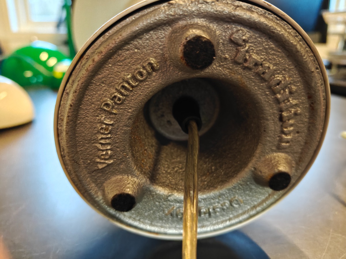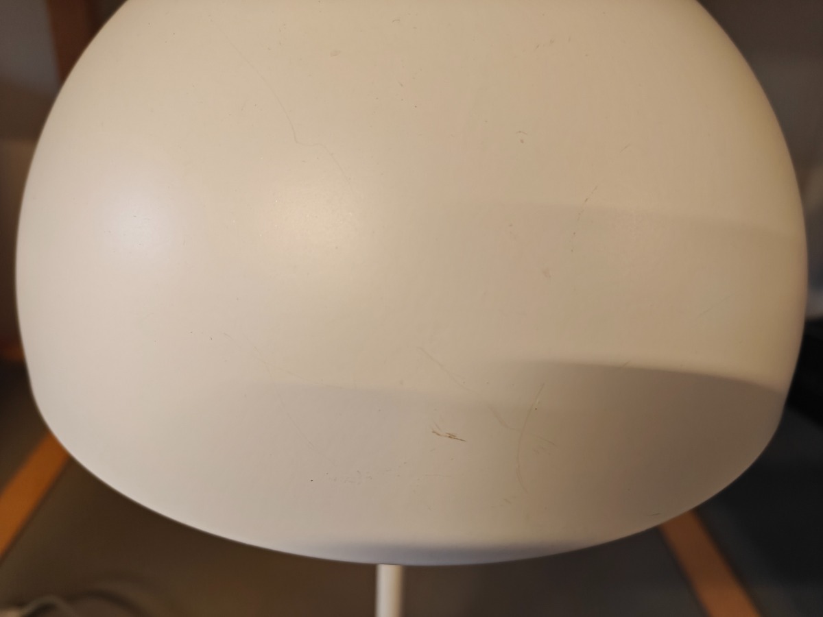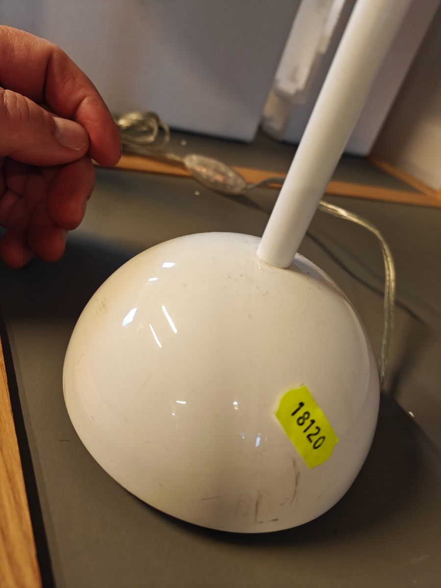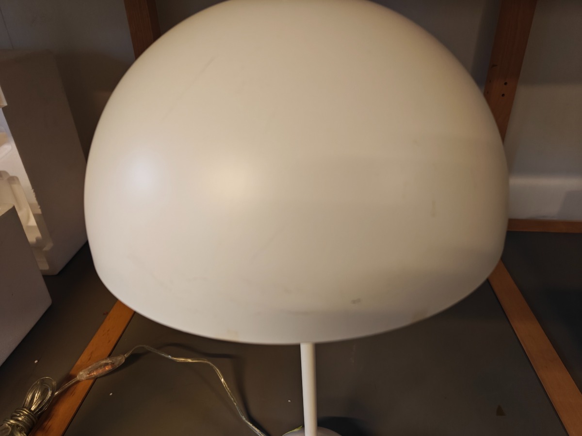 &Tradition Flowerpot VP3 Bordlampe. Design Verner Panton Mat hvid overskærm. H. 50 cm. Mindre brugsspor og skærmstativ med rep.