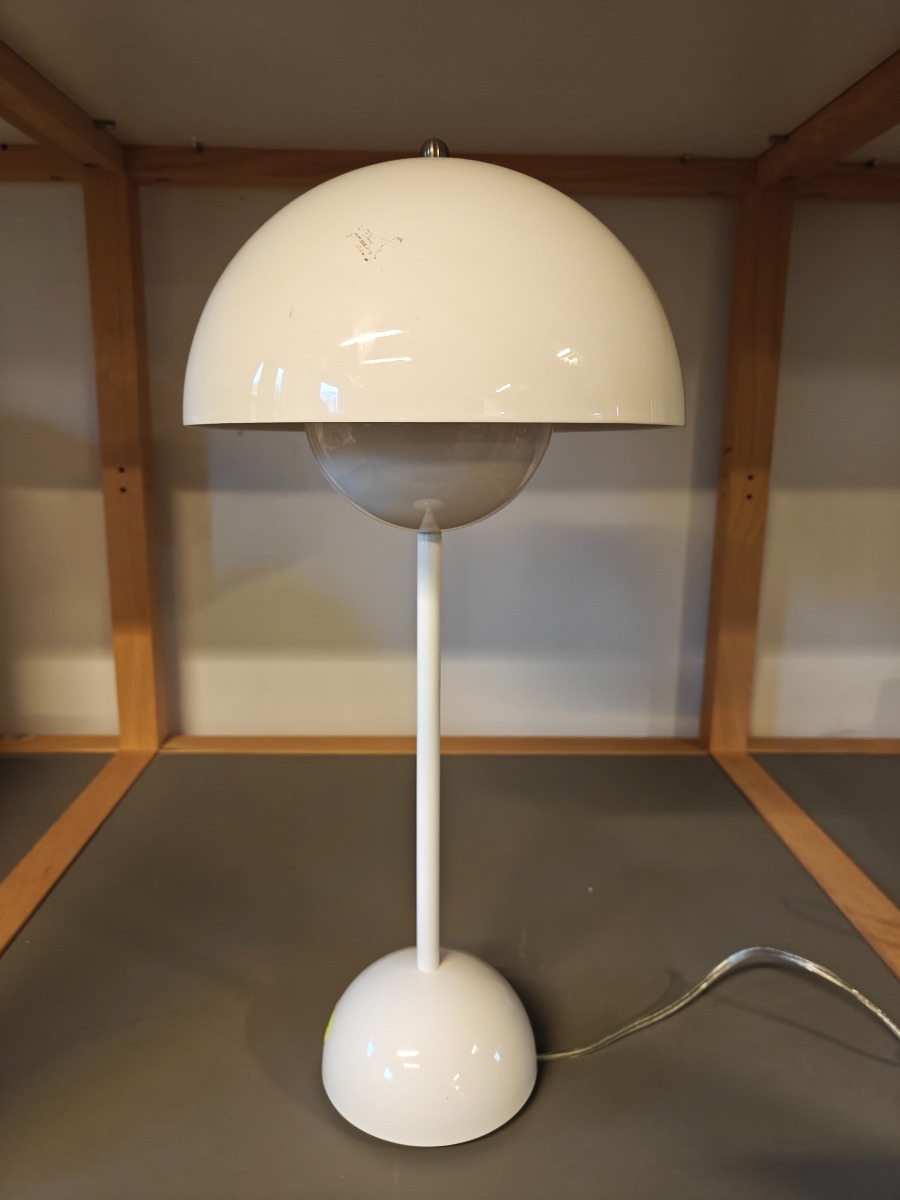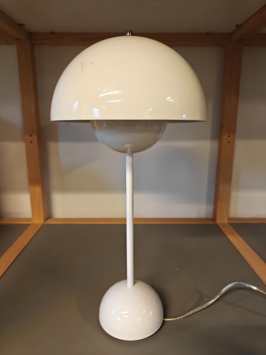 &Tradition Flowerpot VP3 Bordlampe. Design Verner Panton Blank hvid. H. 50 cm. Mindre brugsspor og ridser.