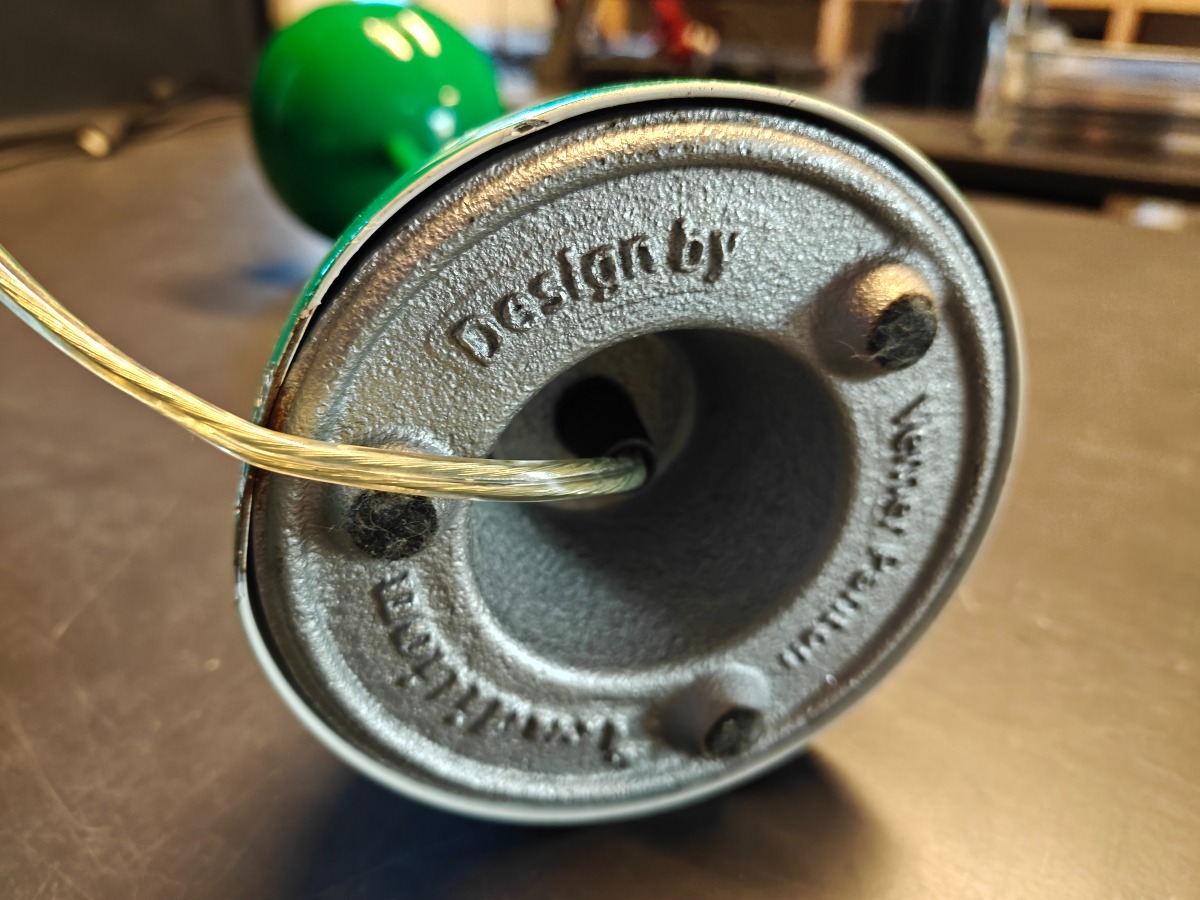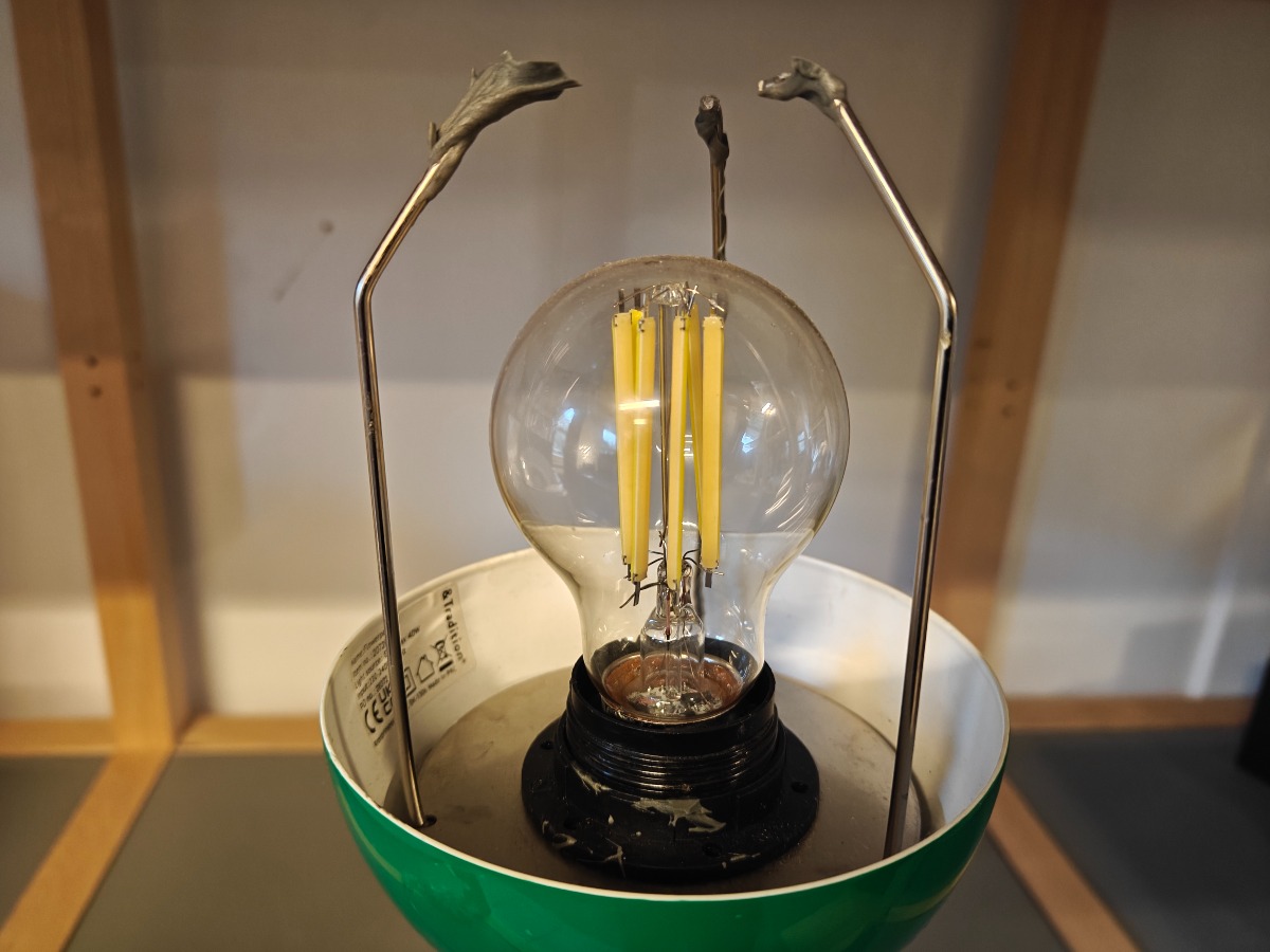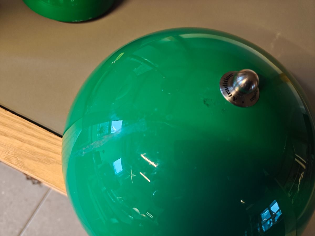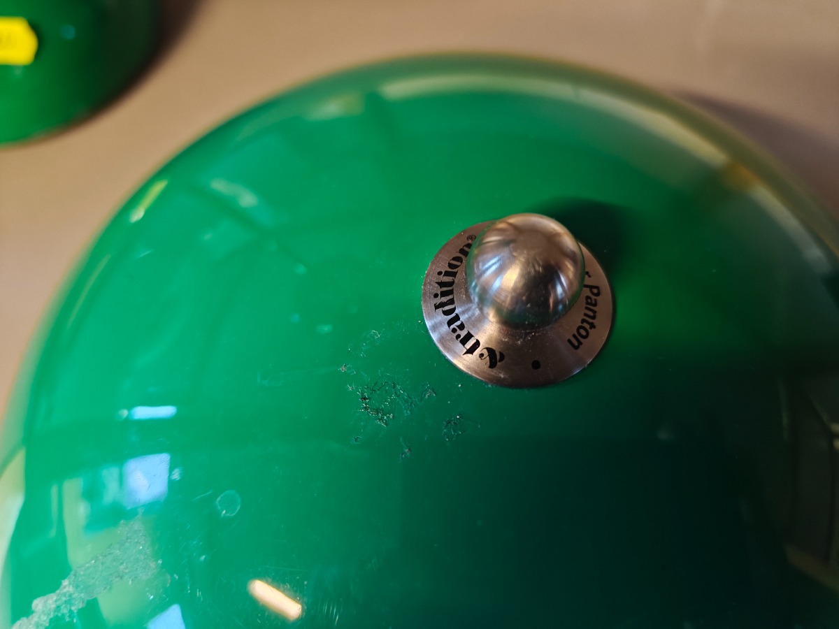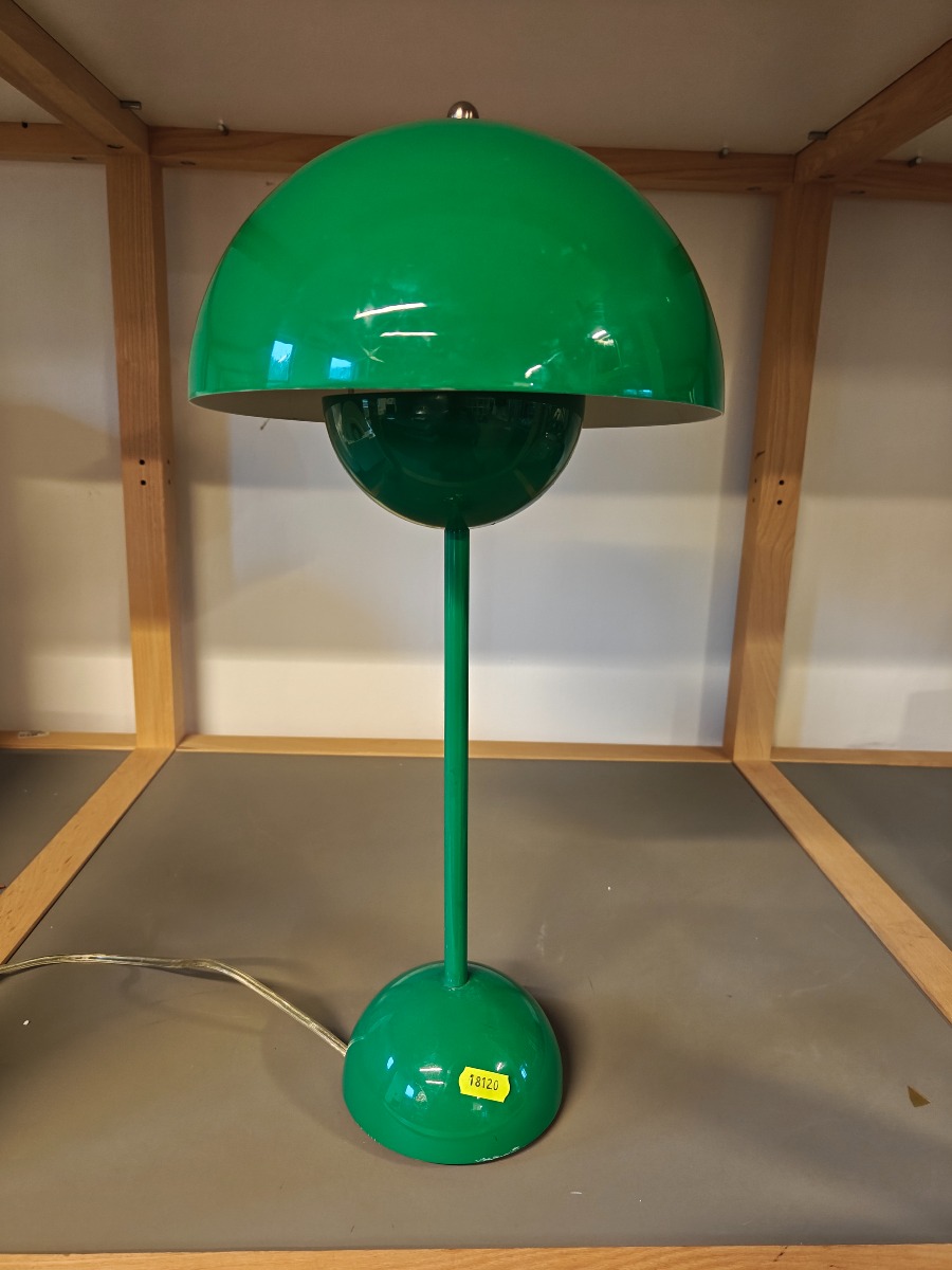 &Tradition Flowerpot VP3 Bordlampe. Design Verner Panton Signal Grøn. H. 50 cm. Skærmstaitv defekt og flere skader på lakering.