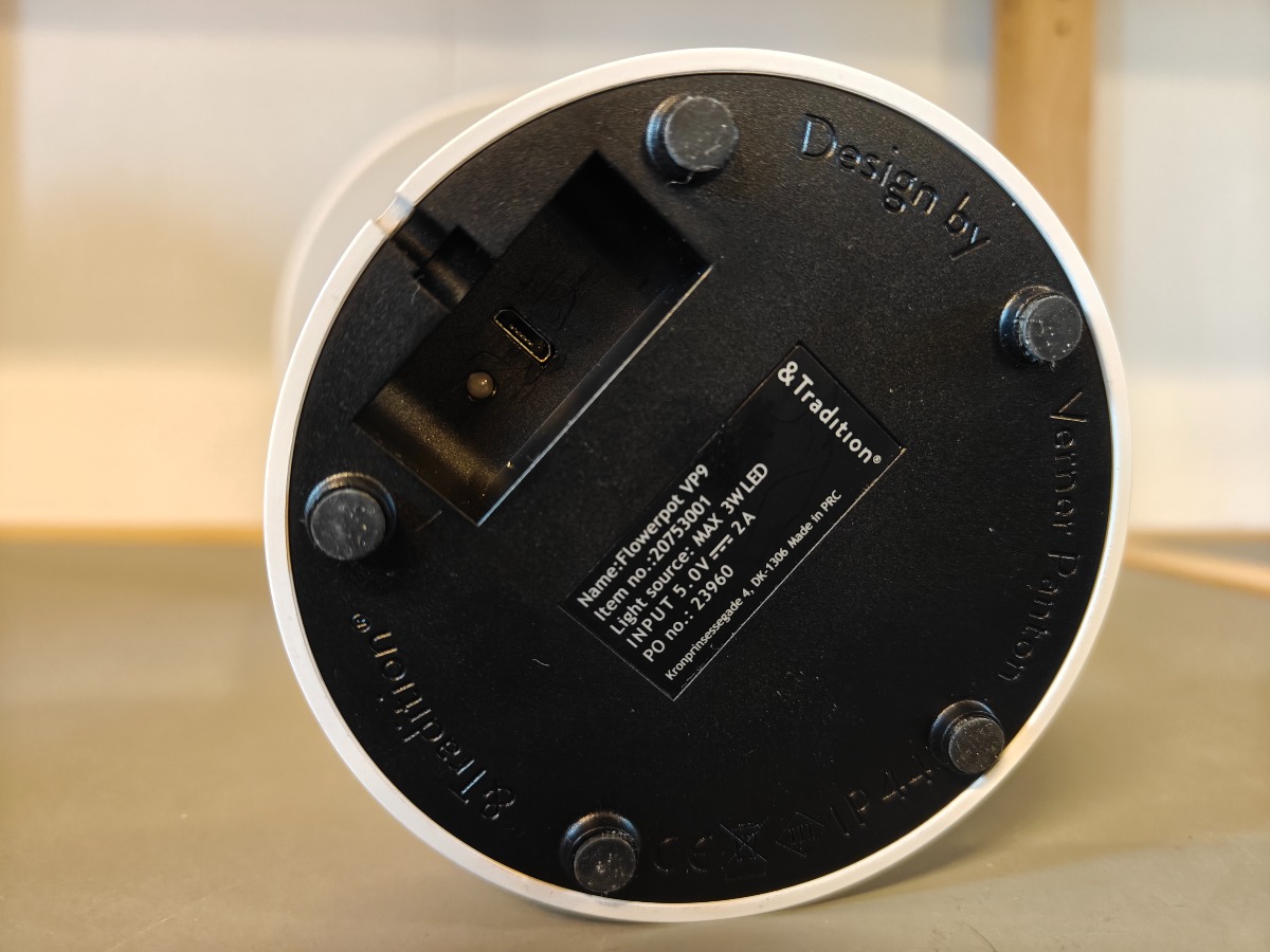 &Tradition Flowerpot VP9 Bordlampe. Blank hvid. H. 29,5 cm. Design Verner Panton. Lampen er genopladelig.