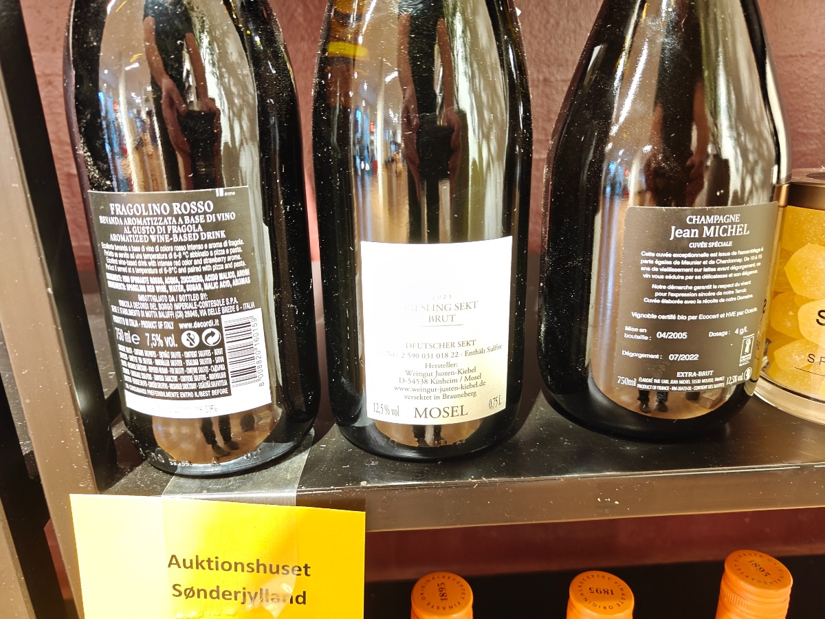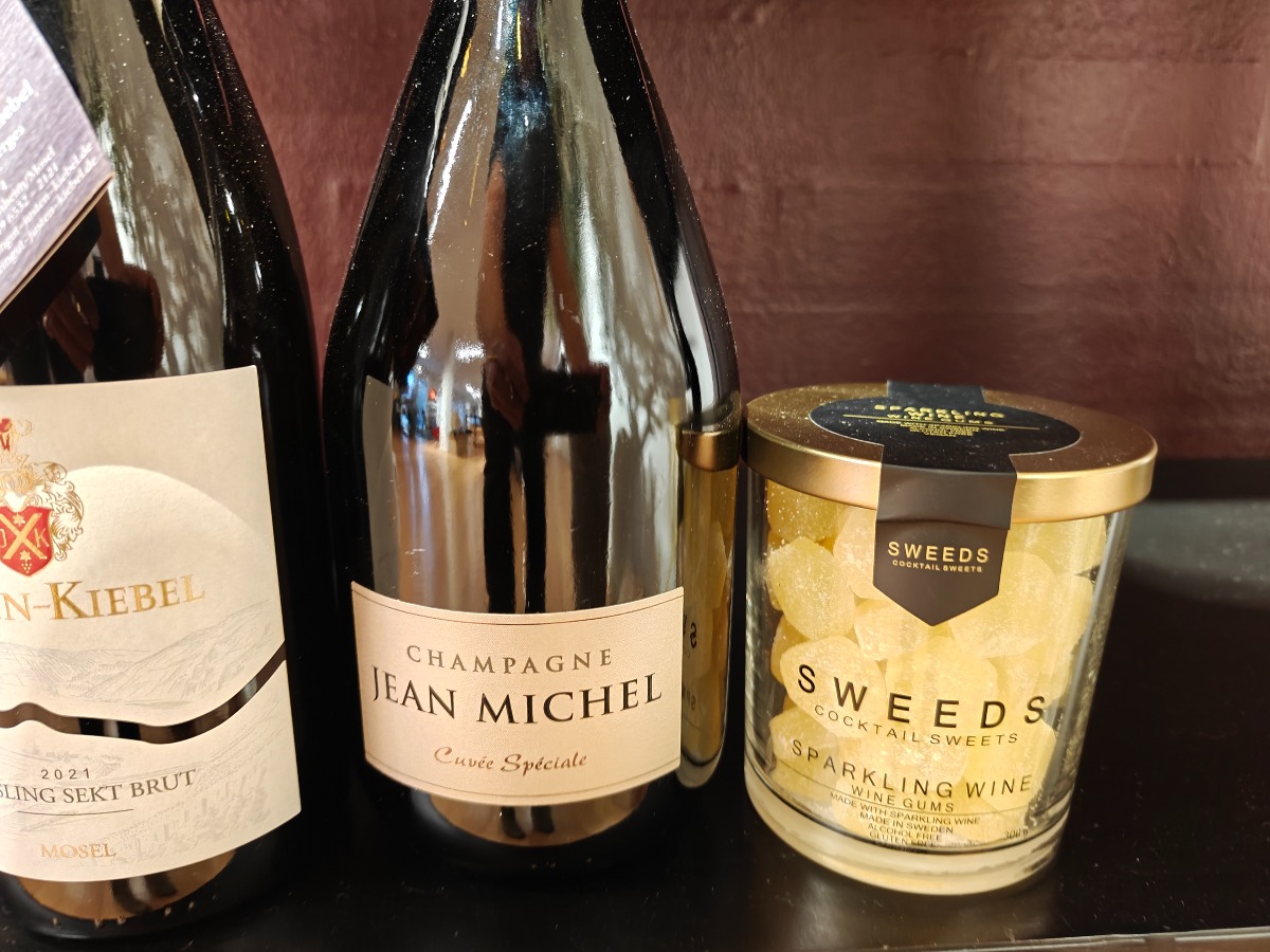 3 fl. mousserende vin samt vingummi. se fotos for detaljer.