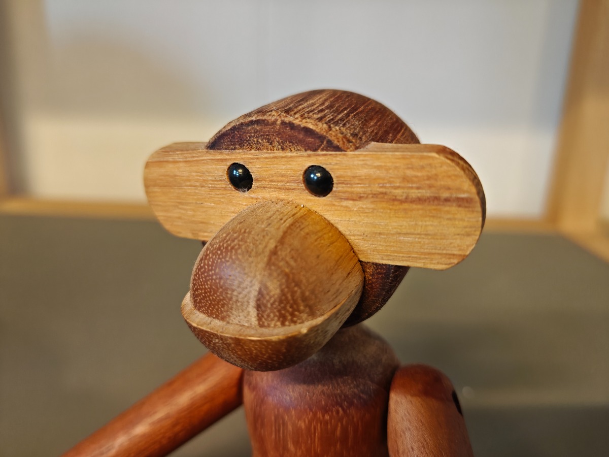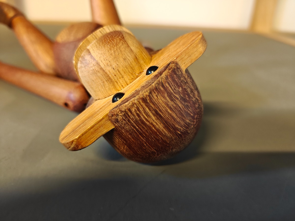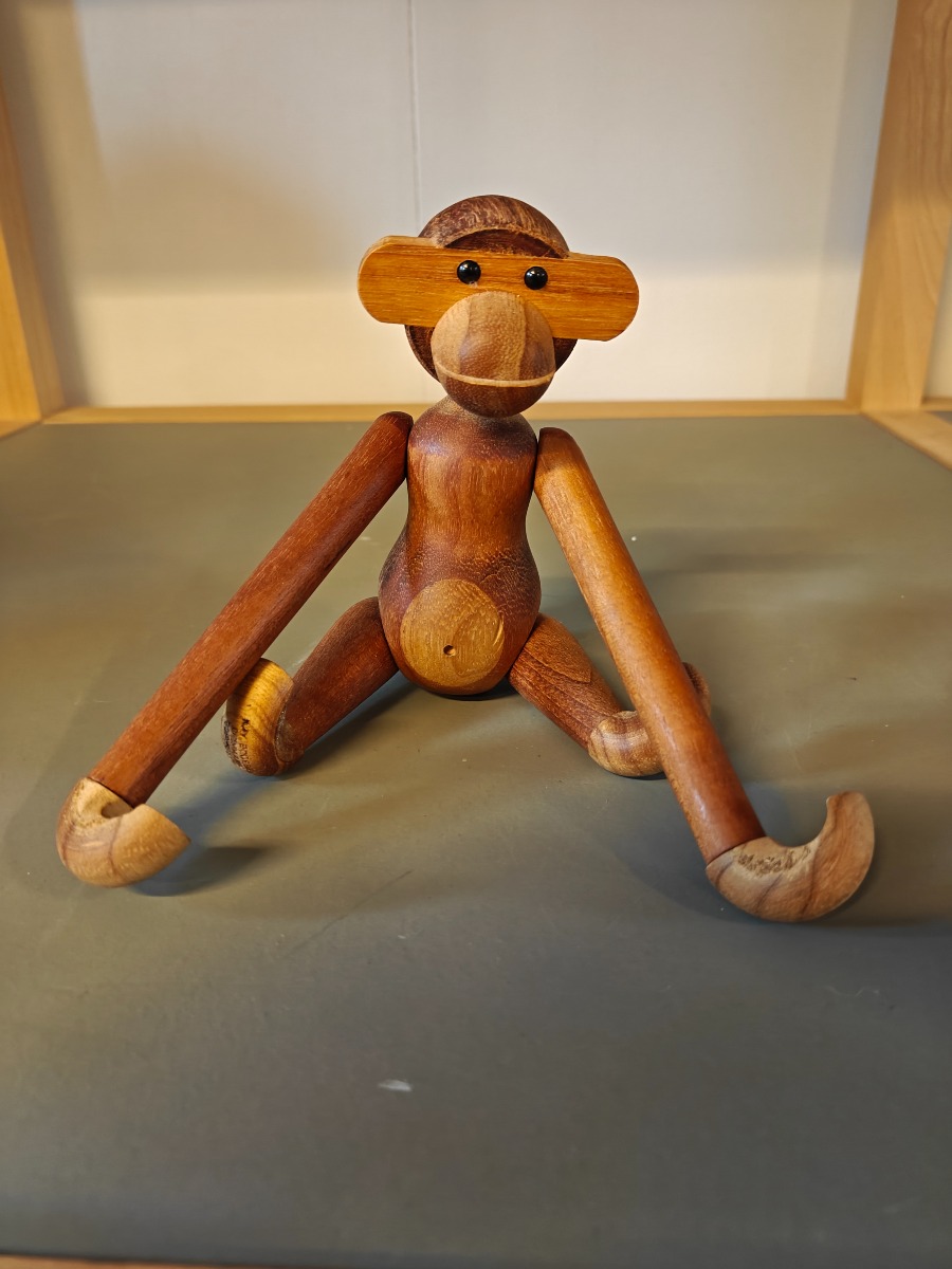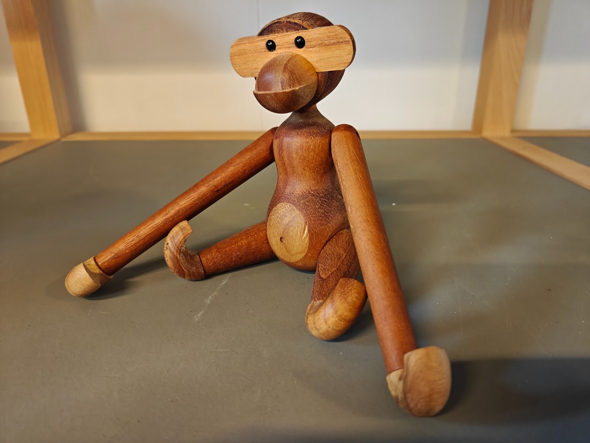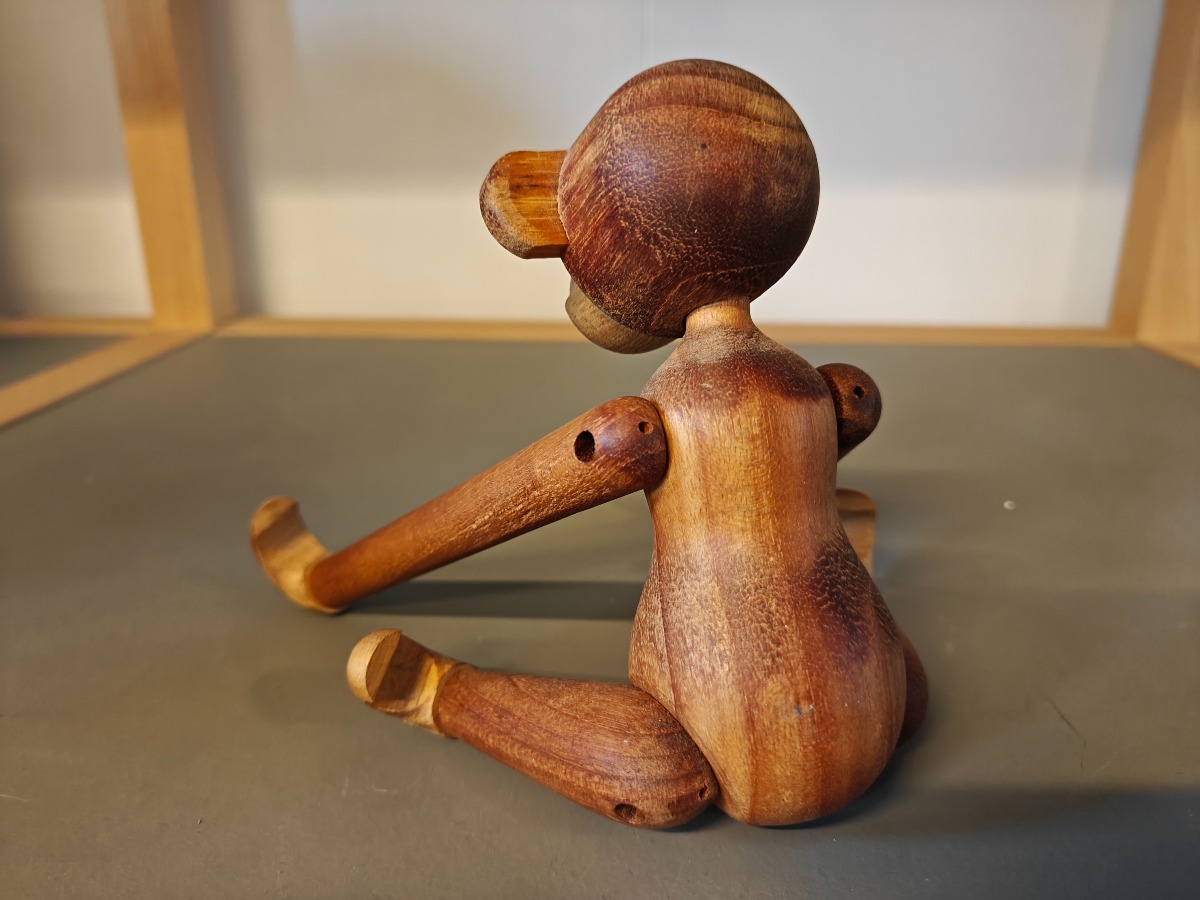 Kay Bojesen abe af teak og limbatræ. Lille model 18,5 cm. Fremstillet hos Rosendahl. Enkelte mindre hak og trykmærker.