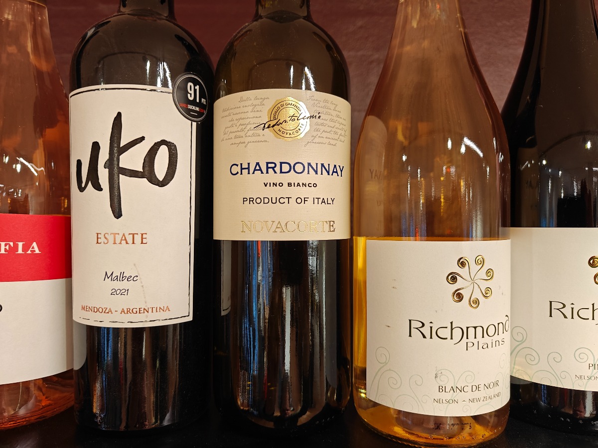 Udvalg af forskellige vine. Se fotos for nærmere detaljer.