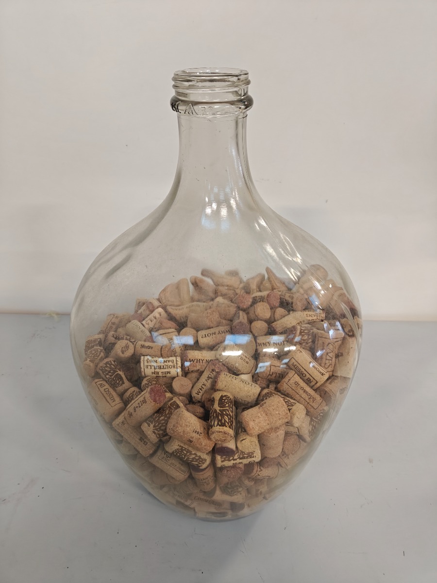 Vinballon med vinpropper.
