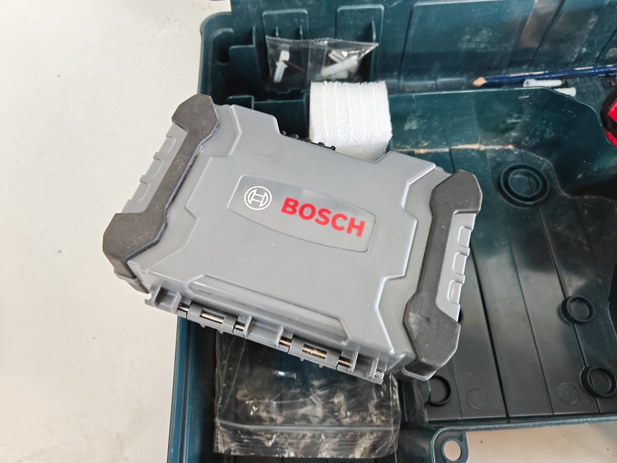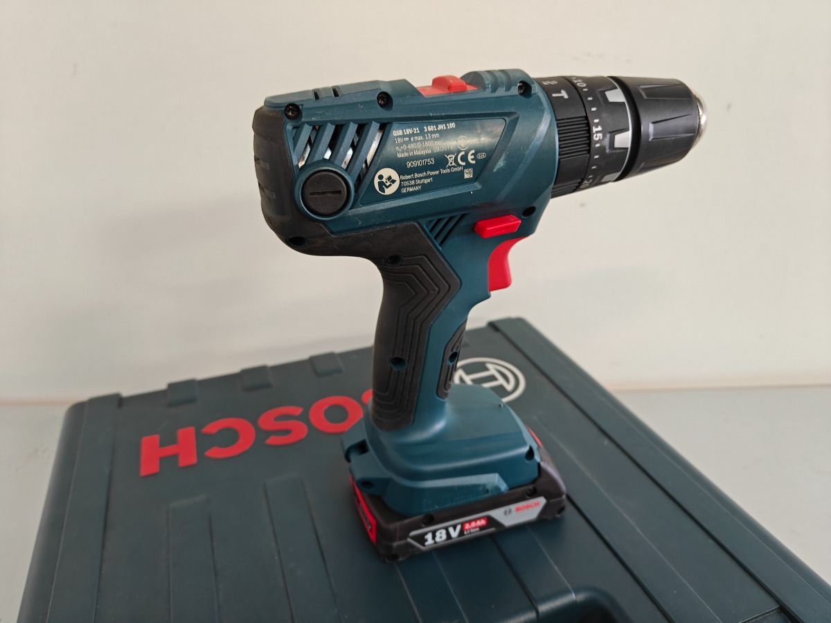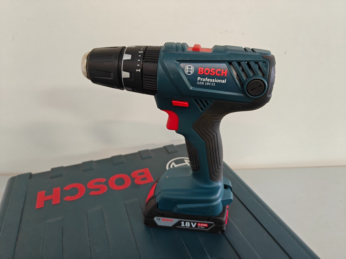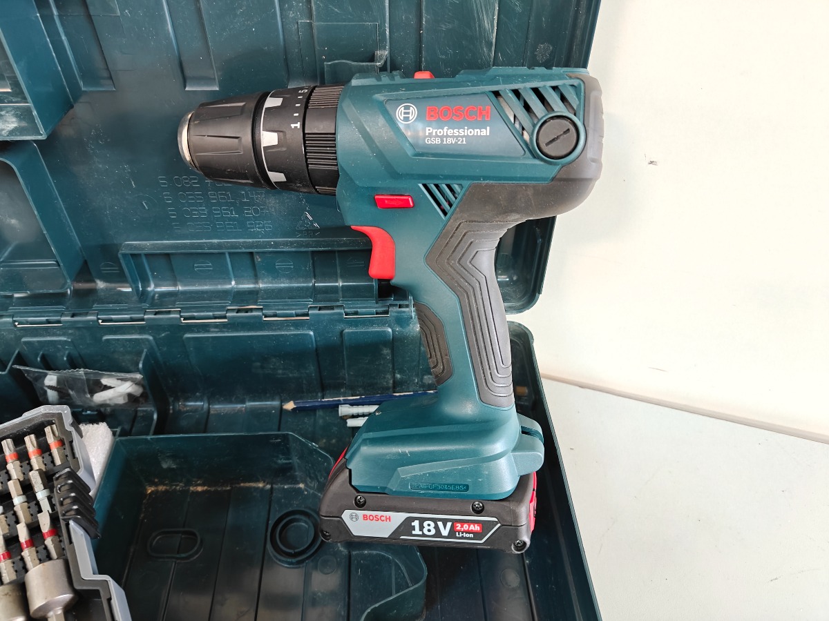 Bosch Prof. GSB 18V-21 bore-/skruemaskine med batteri og original transportkasse. Hertil Bosch bor og bits-sæt. Vi garanterer ikke for funktionaliteten.
