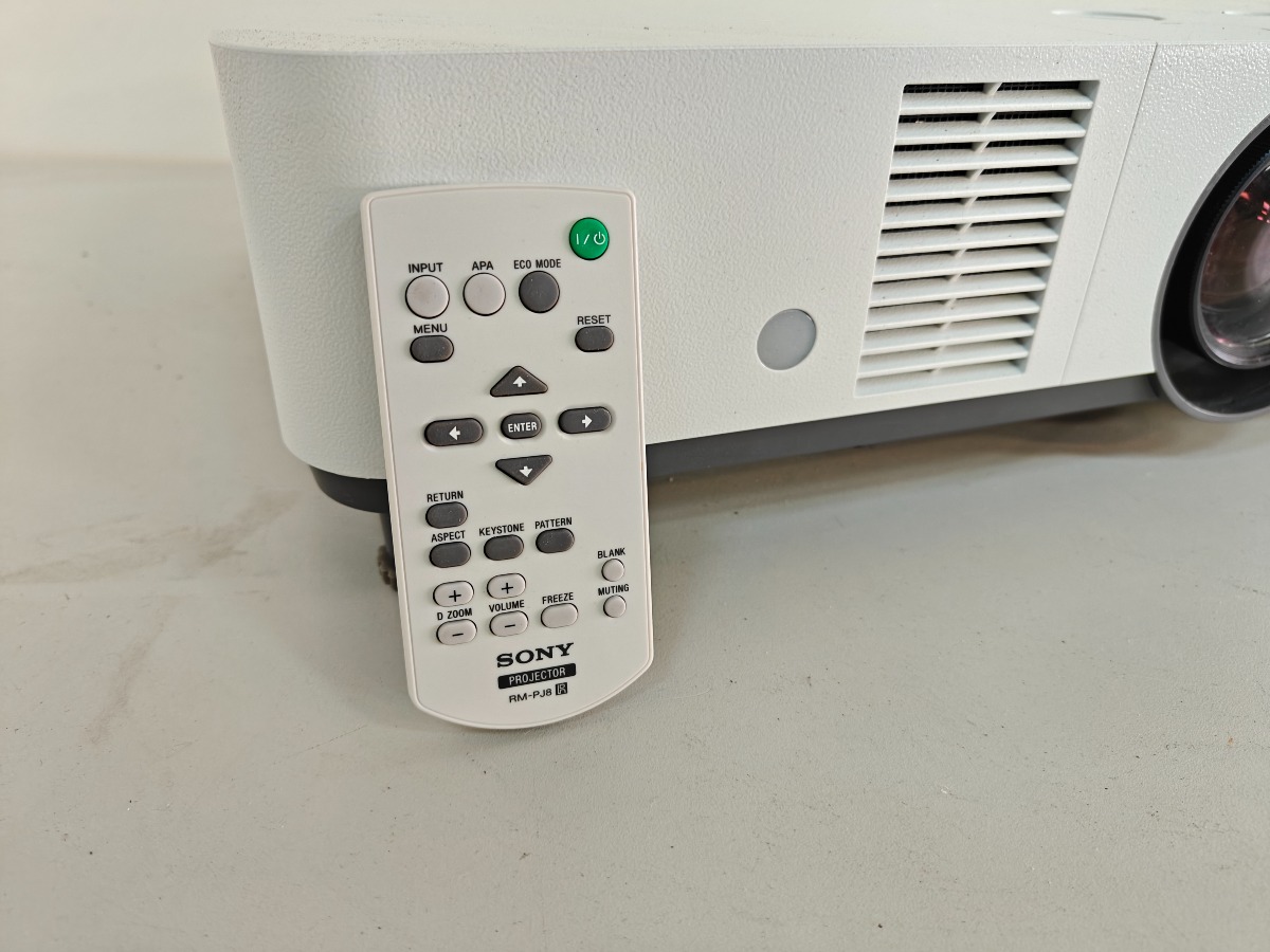 Sony VPL-PHZ61 dataprojektor med tilhørende fjernbetjening og HDMI-kabel. VI garanterer ikke for funktionaliteten.