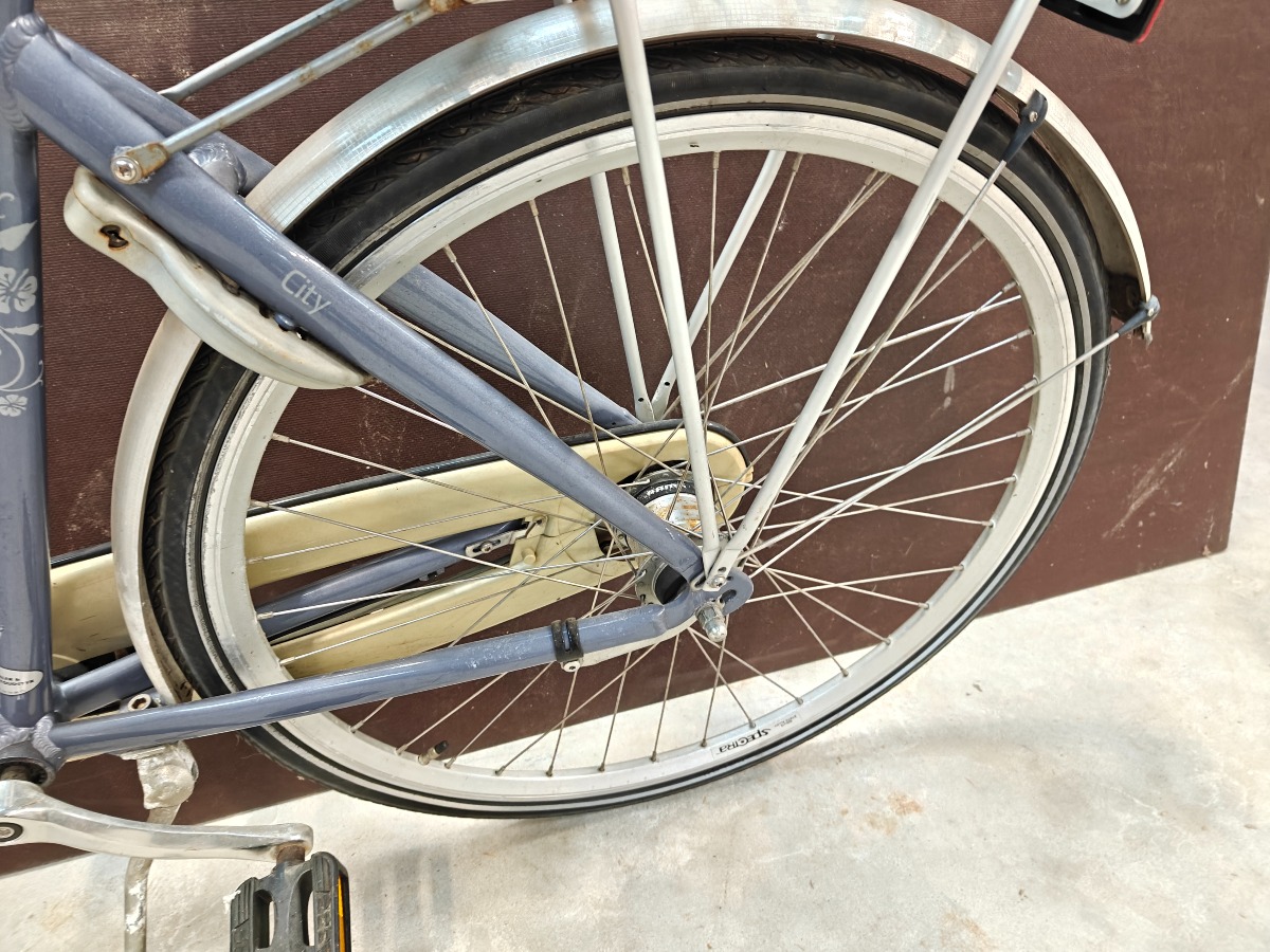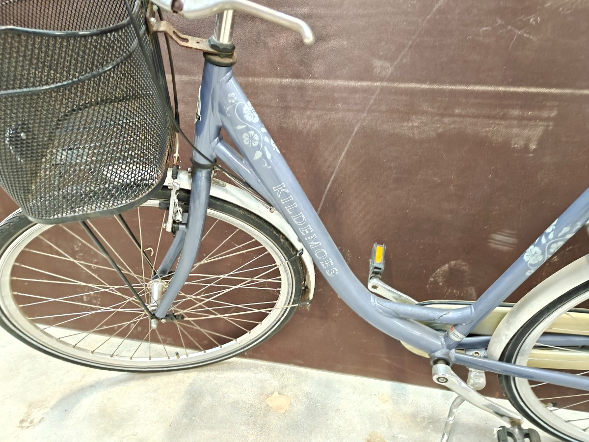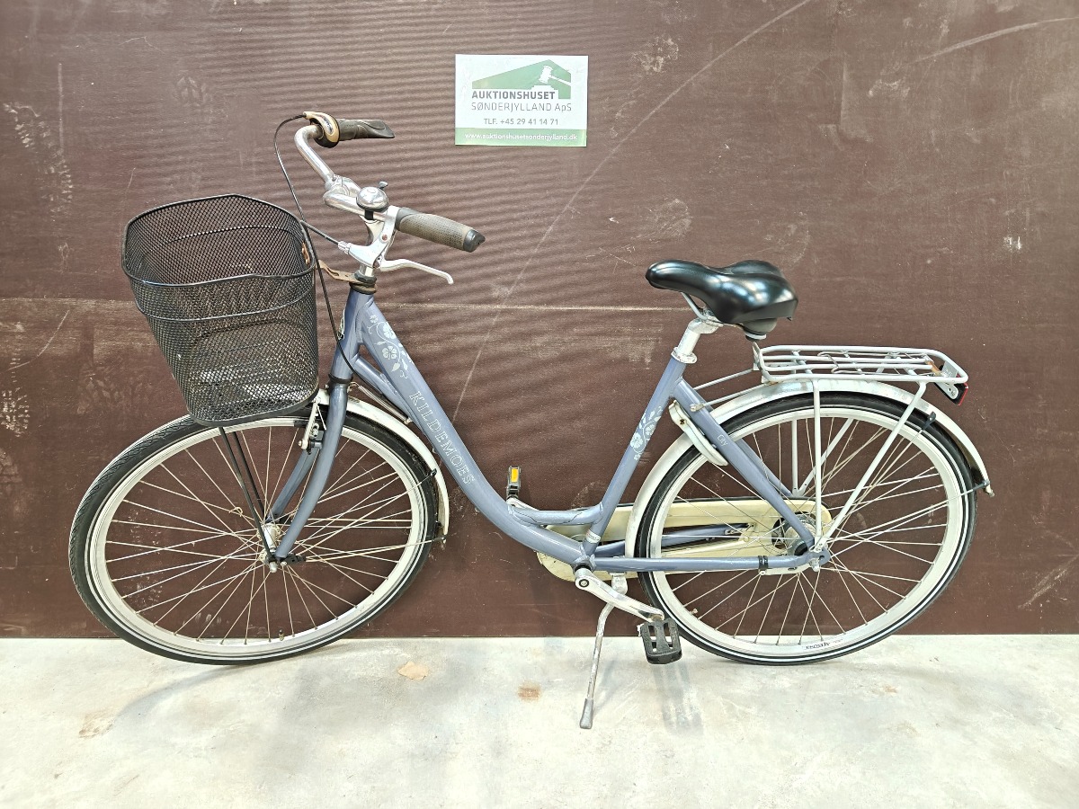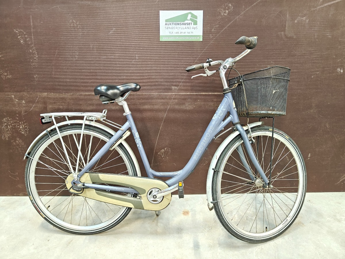 Kildemoes City damecykel med fastmonteret kurv. Indvendige gear. Cyklen er brugt. Vi garanterer ikke for eventuelle mangler og funktionalitet.