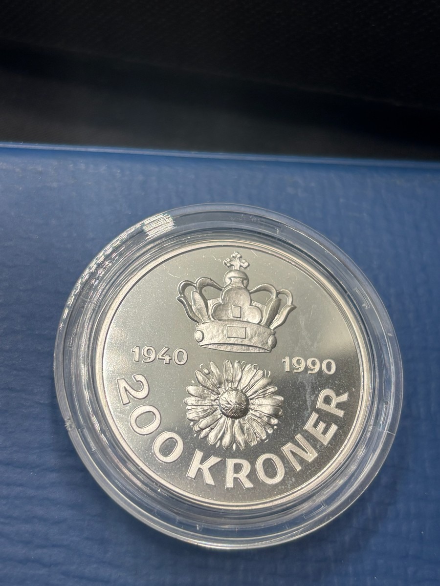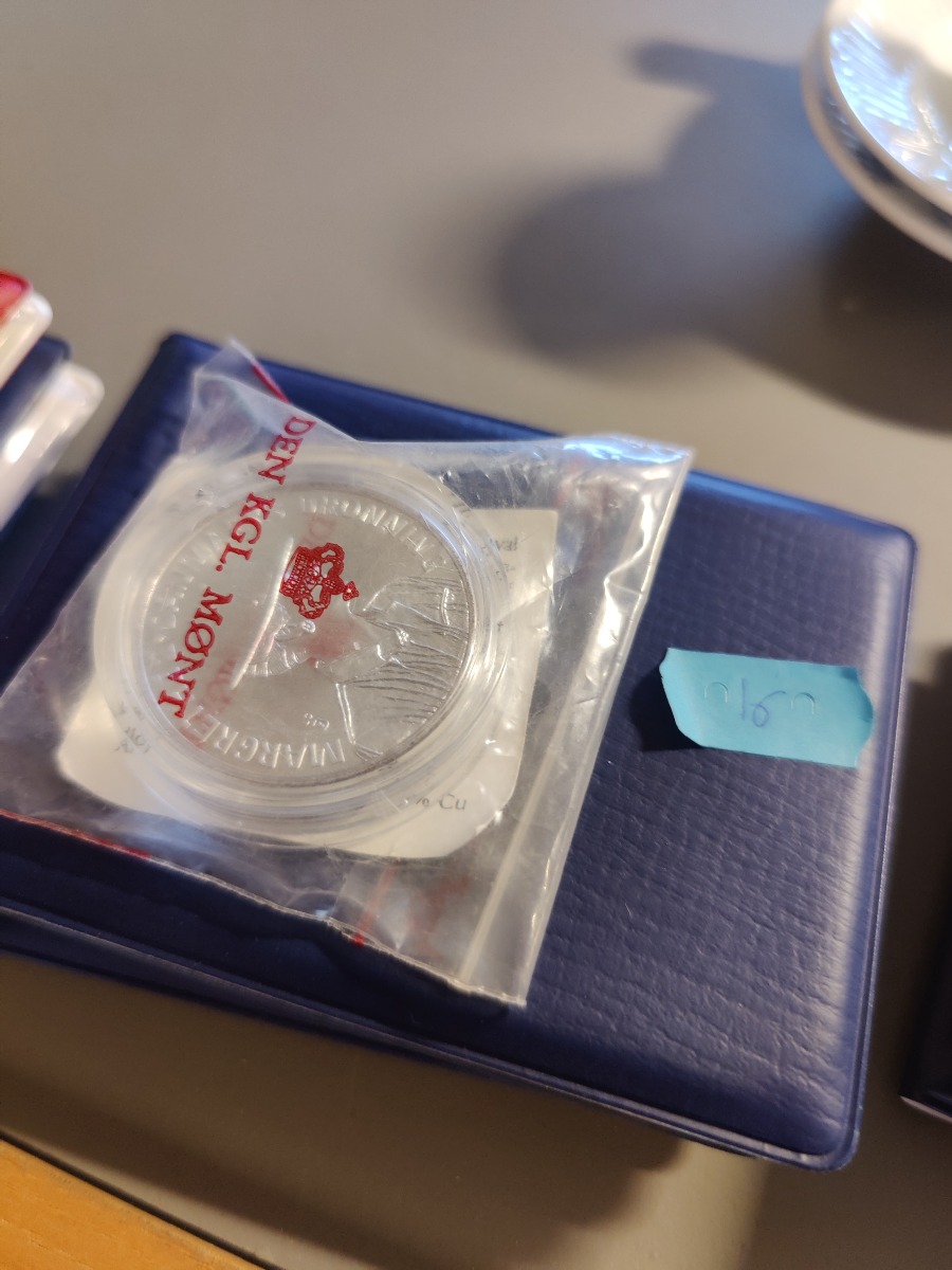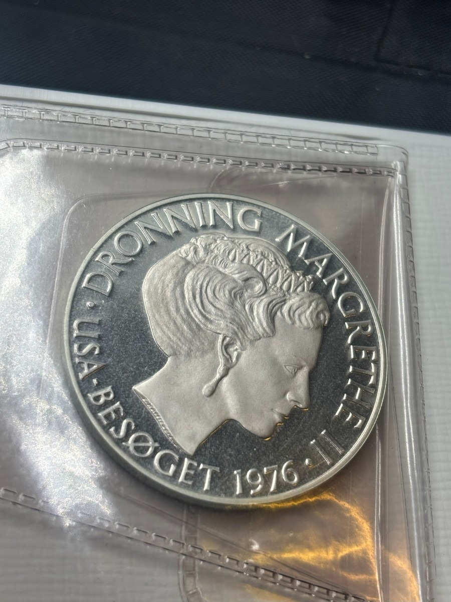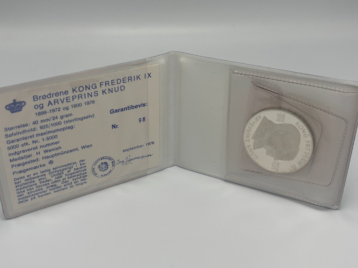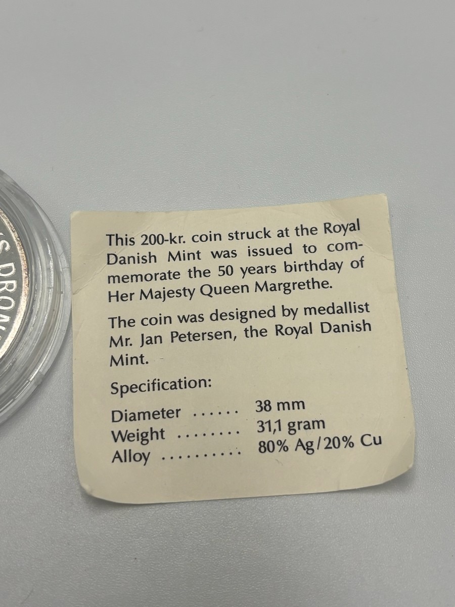 4 stk. sølvmønter - 2 x Dronning Margrethe II, Dronning Margrethe II & Prins Henrik og Kong Frederik IX & Arveprins Knud.