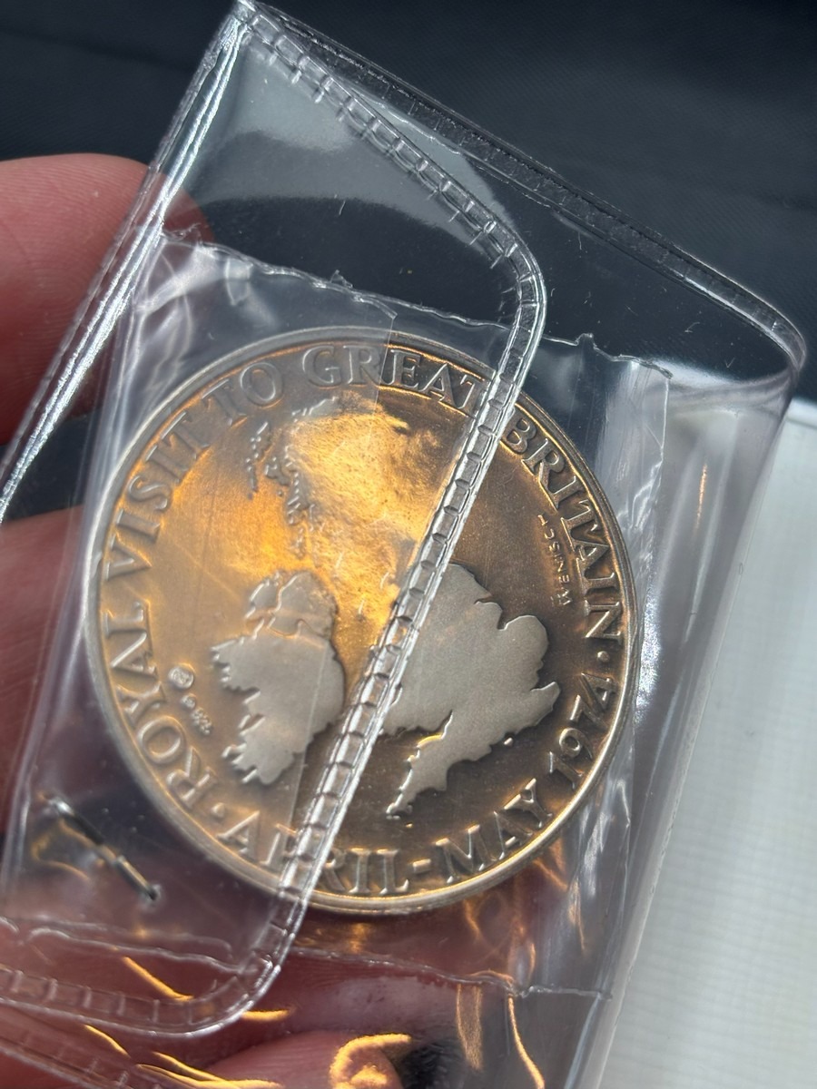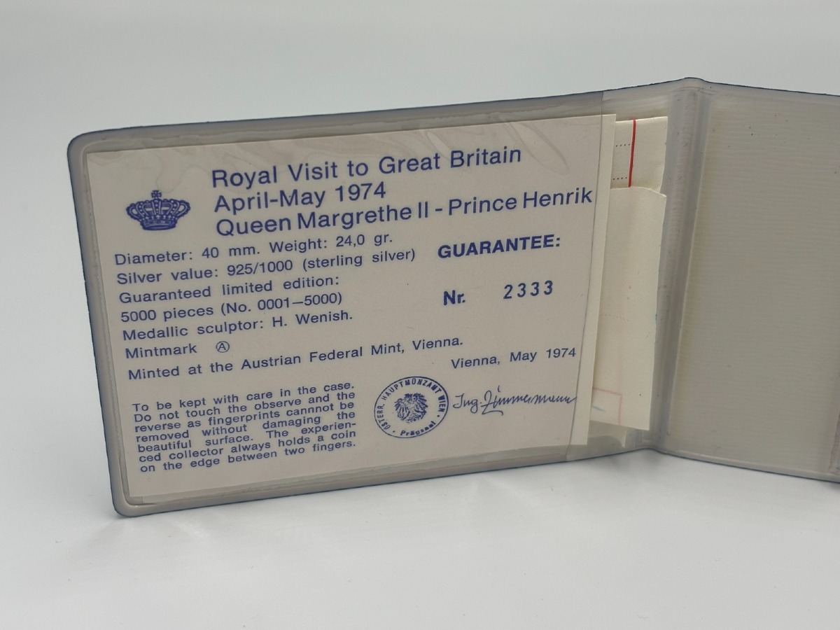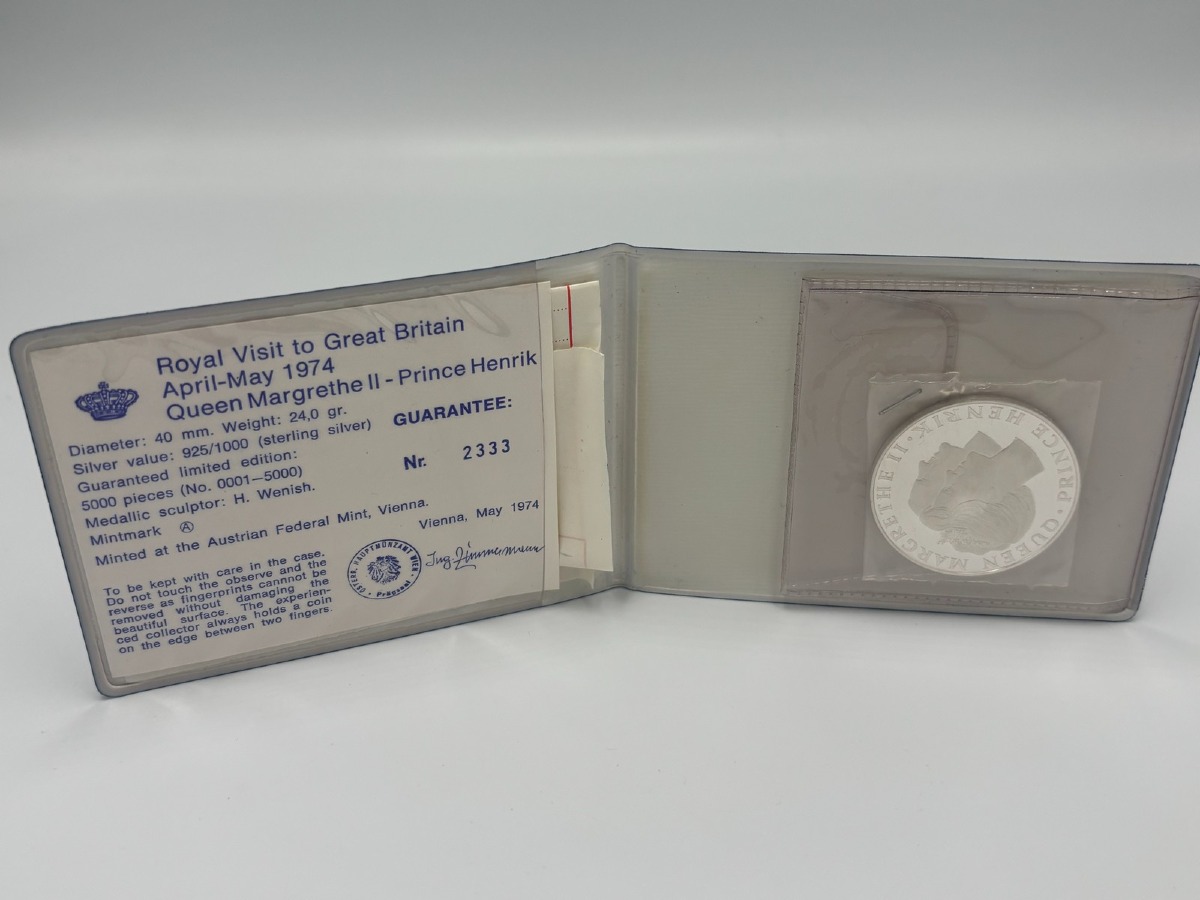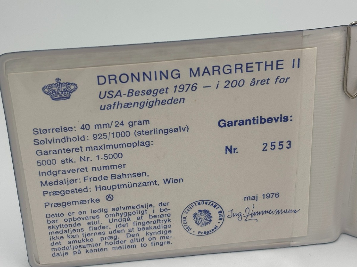 4 stk. sølvmønter - 2 x Dronning Margrethe II, Dronning Margrethe II & Prins Henrik og Kong Frederik IX & Arveprins Knud.