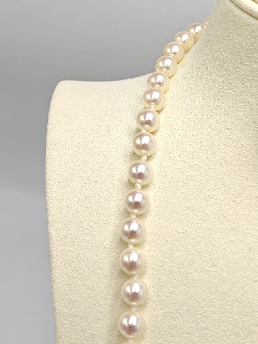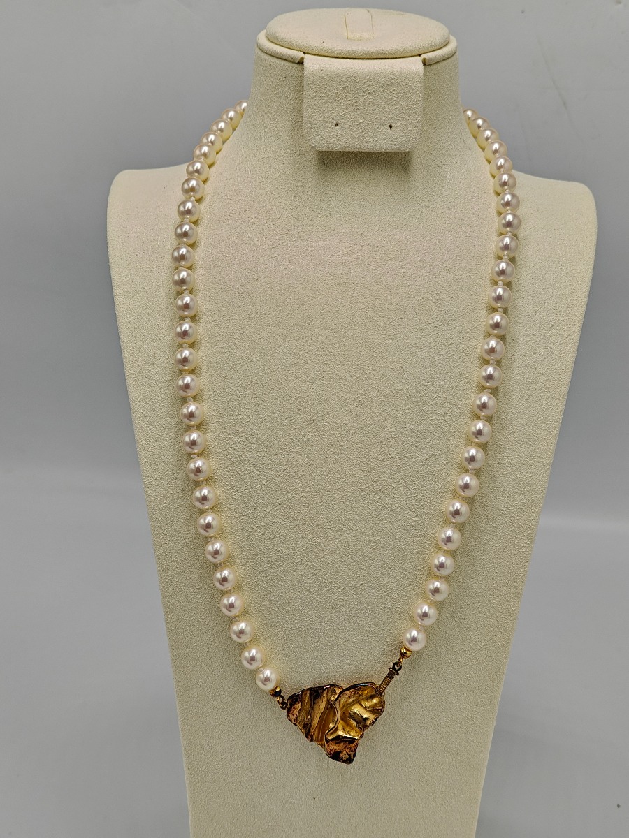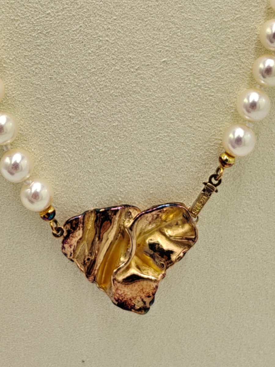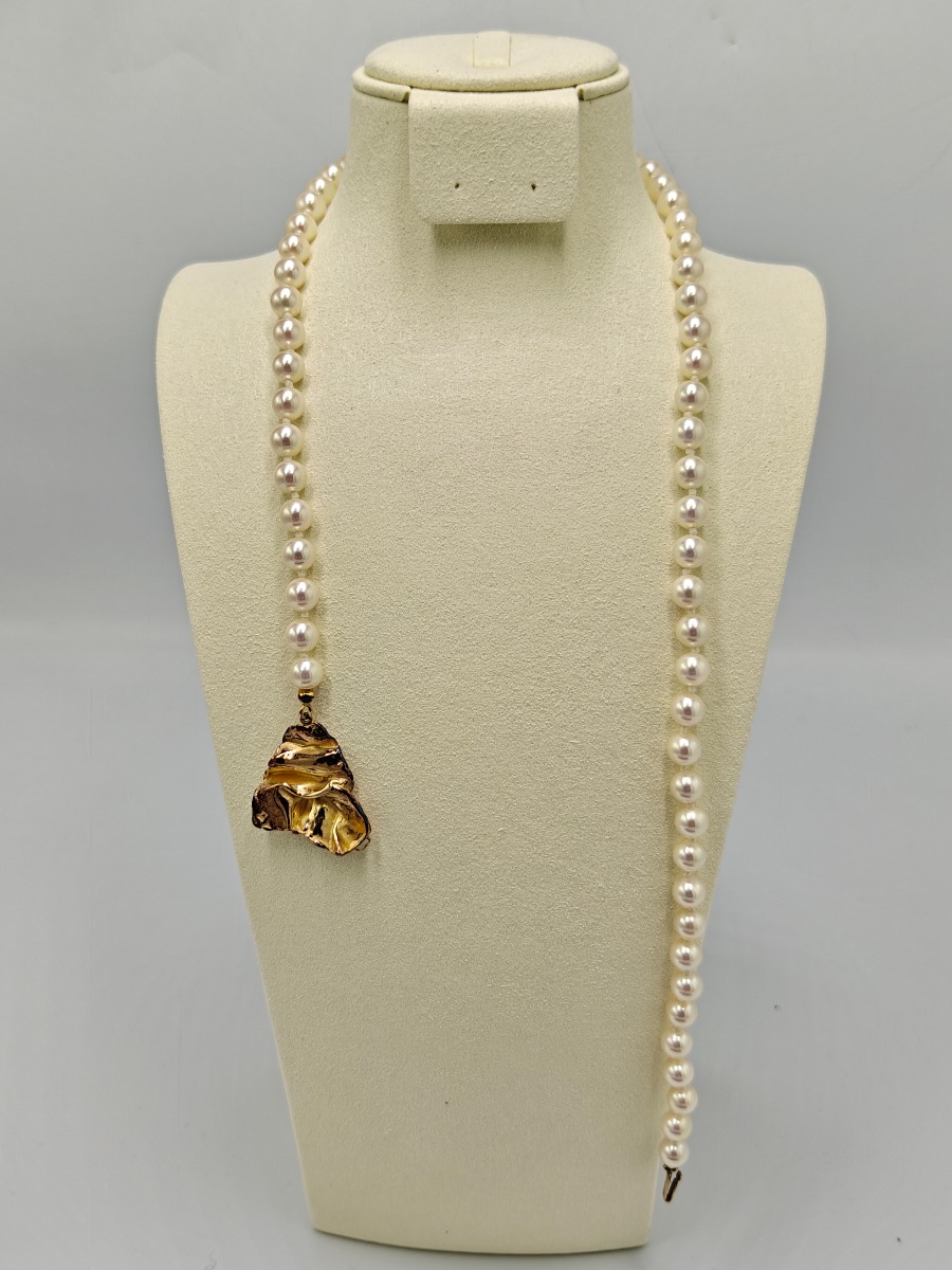 Perlekæder (2). Perlekæde forgyldt sterlingsølv, Jens Aagaard, den er stemplet 925. Den måler 42 cm. Perlekæde med sterlingsølv lås. Stemplet 925. Måler 80 cm. Trænger evt. til rens. Brugt. Salg for offentlig myndighed.