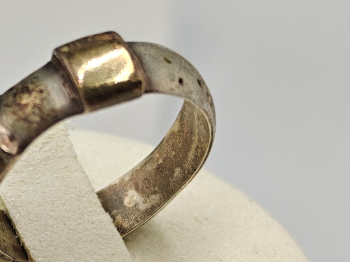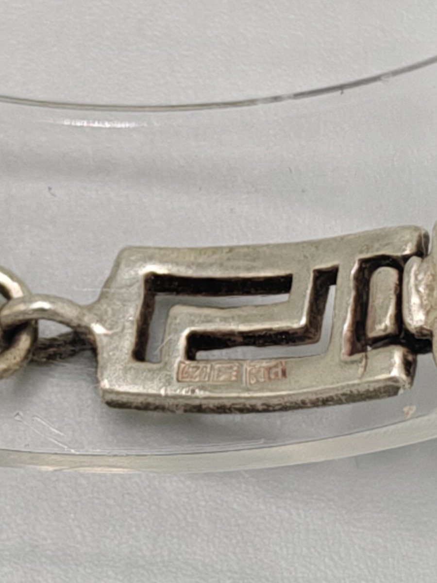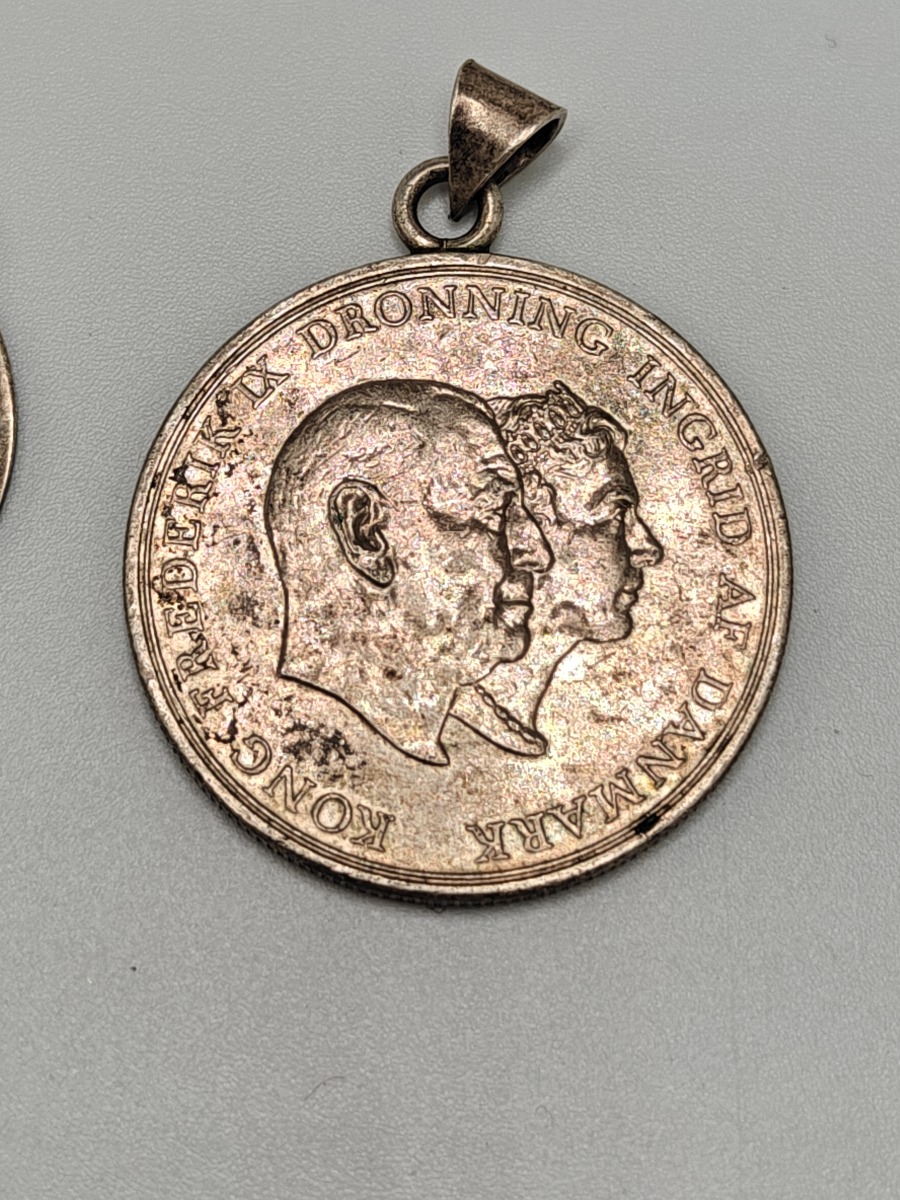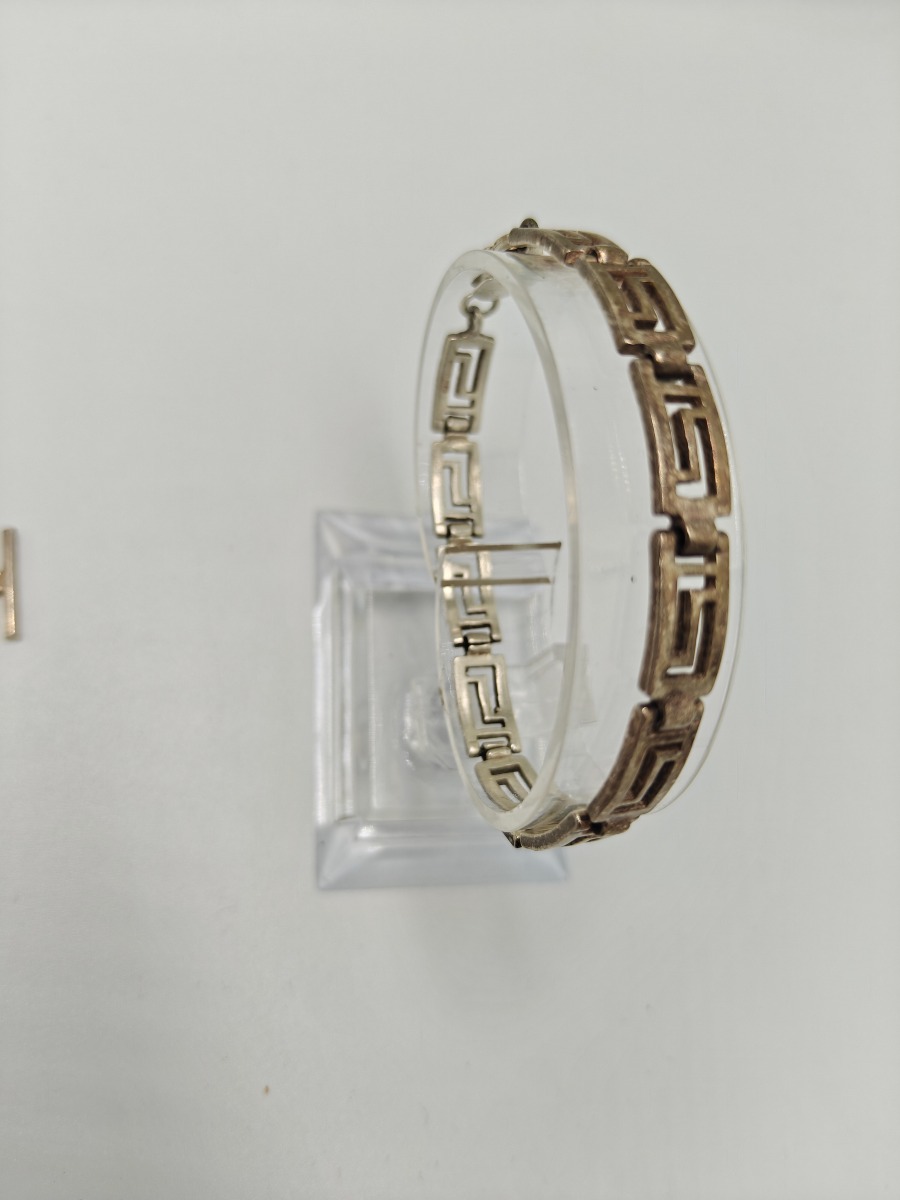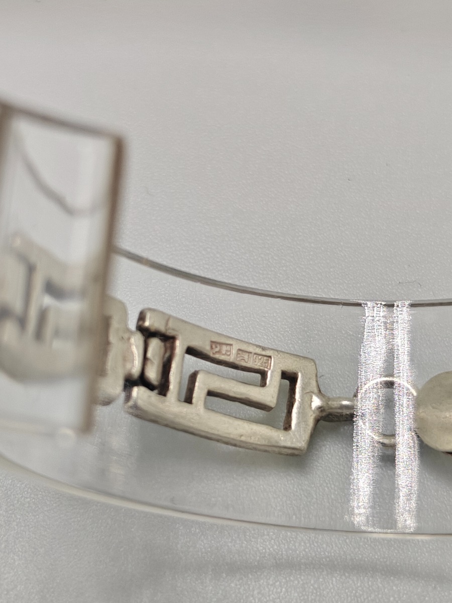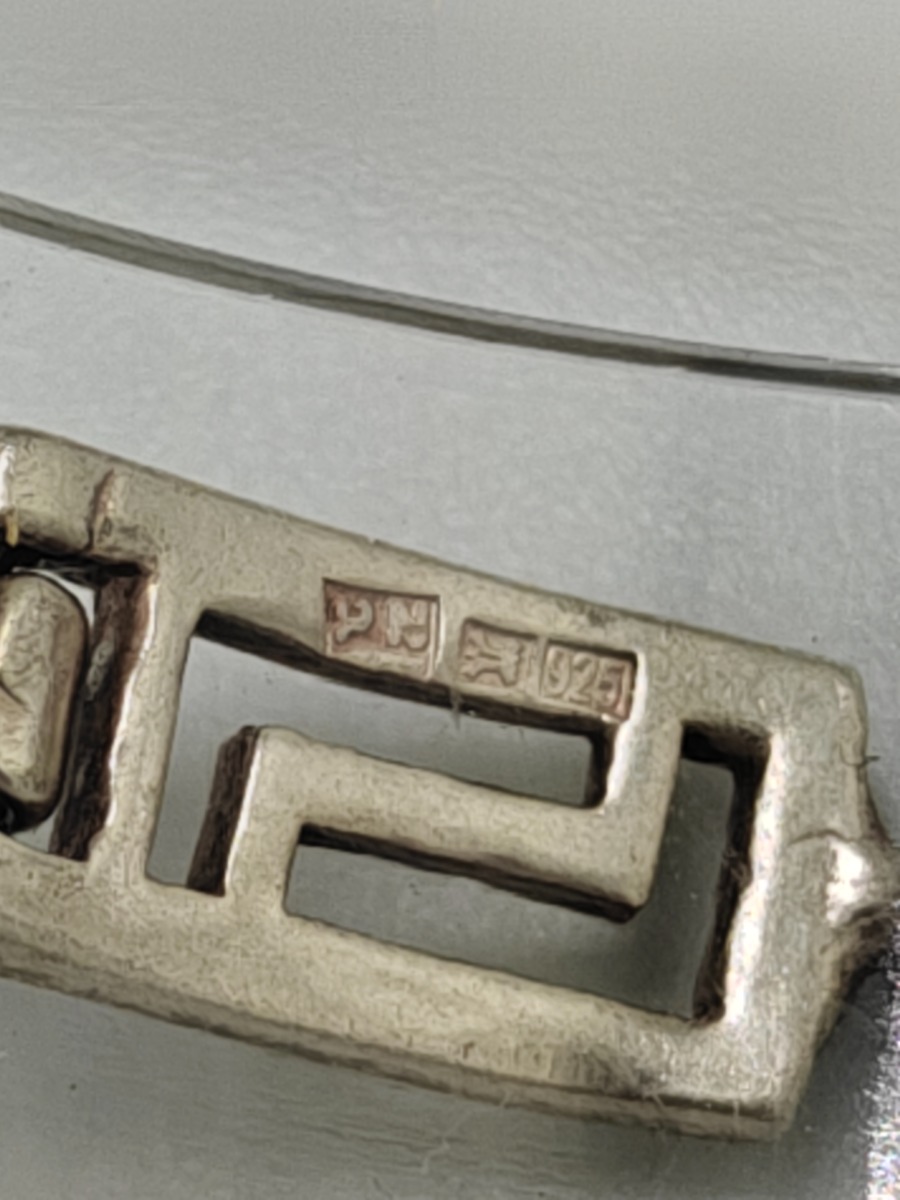 Smykker (11). Armbånd sterling sølv, stemplet 925, måler 18 cm og vejer 14 g. Slipsenål, stemplet PGNIG og vejer 11 gram, Forgyldt broche, stemplet PCO 925 og vjer 3 gram, Ring med glassten. Stemplte 925, vejer 6 gram uden sten og 8 gram med sten. Måler 53. 2 stk ens ringe stemplet, måler 49. Ring med forgyldt firkanter, stemplet 925 og vejer 3 gram. Manchetknapper stemplet 925 sterling sølv, vejer 3 gram, Møntevedhæng stor vejer 18 gram, mellem vejer 6 gram og lille vejer 7 gram. Trænger evt. til rens. Brugt. Salg for offentlig myndighed.