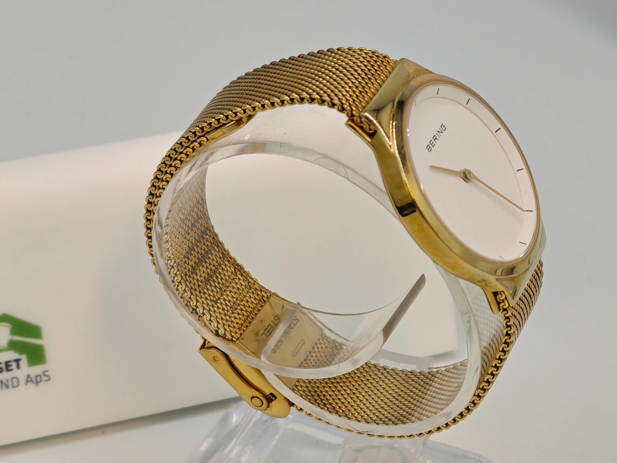 Bering Classic dameur model 12131 - 339 med en poleret/børstet guld rem. Ser meget ubrugt ud. Salg for offentlig myndighed