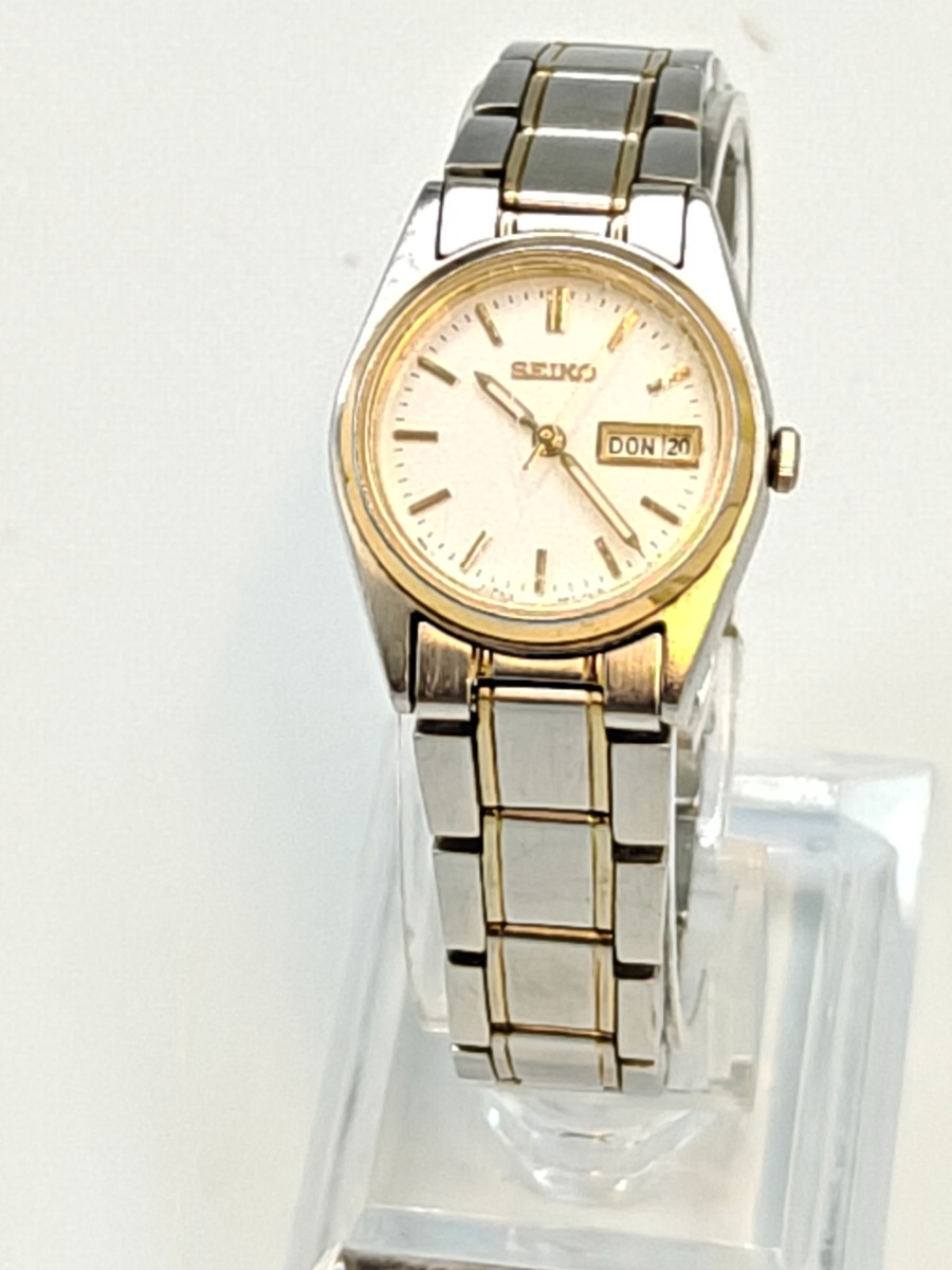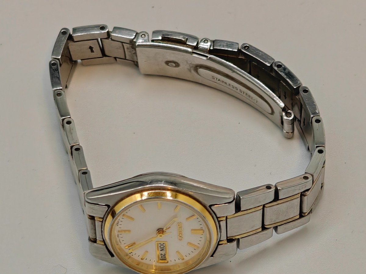 Seiko dameur med datoviser. Trænger evt. til rens. Brugt og med slidtage. Salg for offentlig myndighed