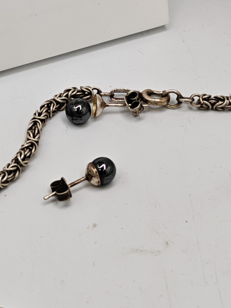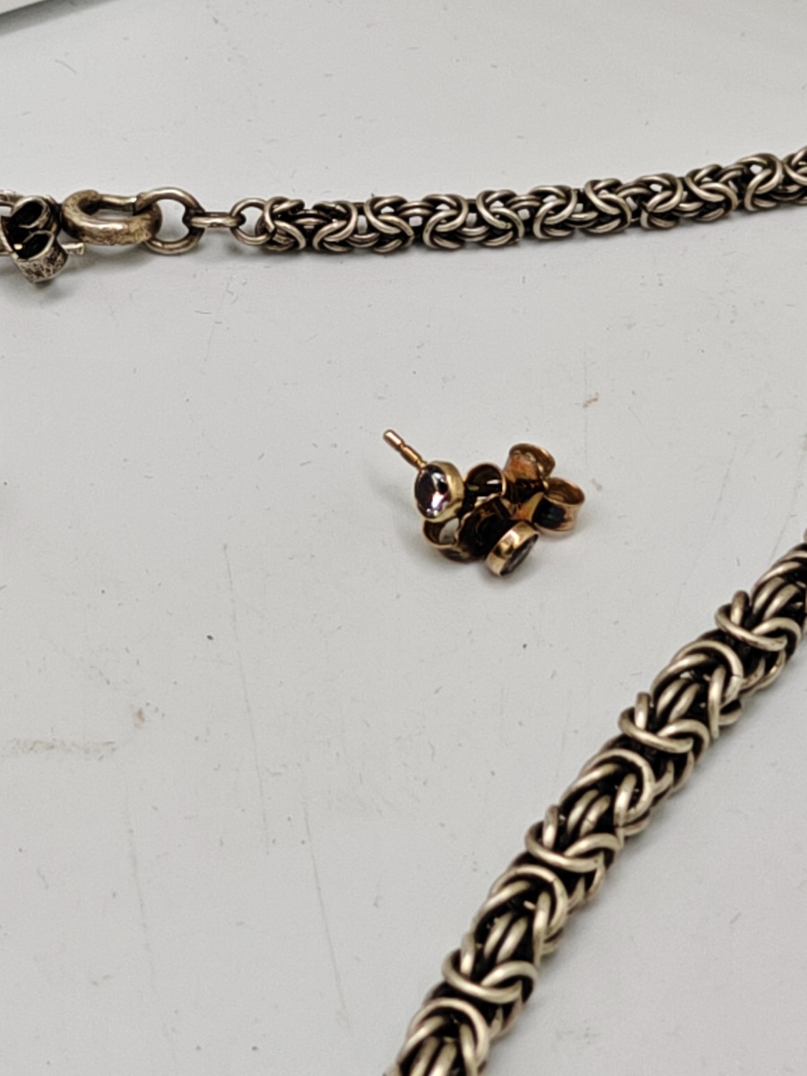 Sterlingsølv 925 kæder m.m. 4 kæder og 2 sæt øreringe. I alt 43 gram. Brugt