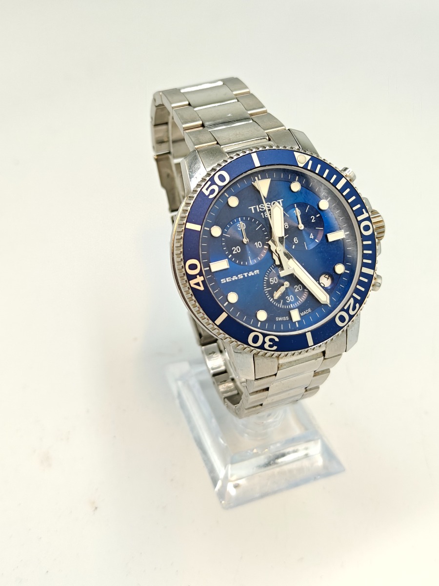 Tissot Seastar 1853 Chronograph herreur med blå urskive. Pæn stand. Brugt og trænger til rengøring.