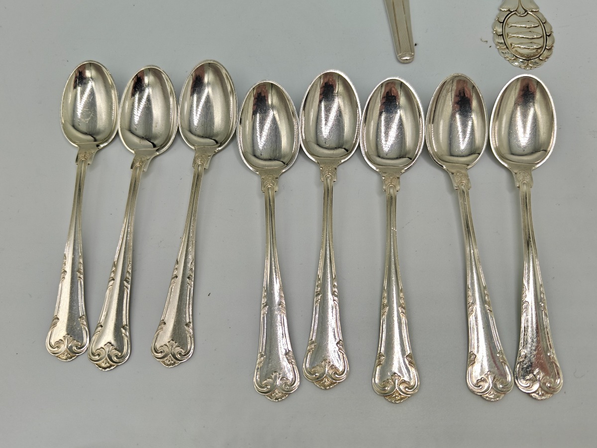 Tretårnet sterling sølv bestik (28) Kage gafler og teskeer. Både tretårnet 236 gram og og 830S 263 gram samt 3 dele pletsølv. I meget pæn stand og brugt. Salg for offentlig myndighed.