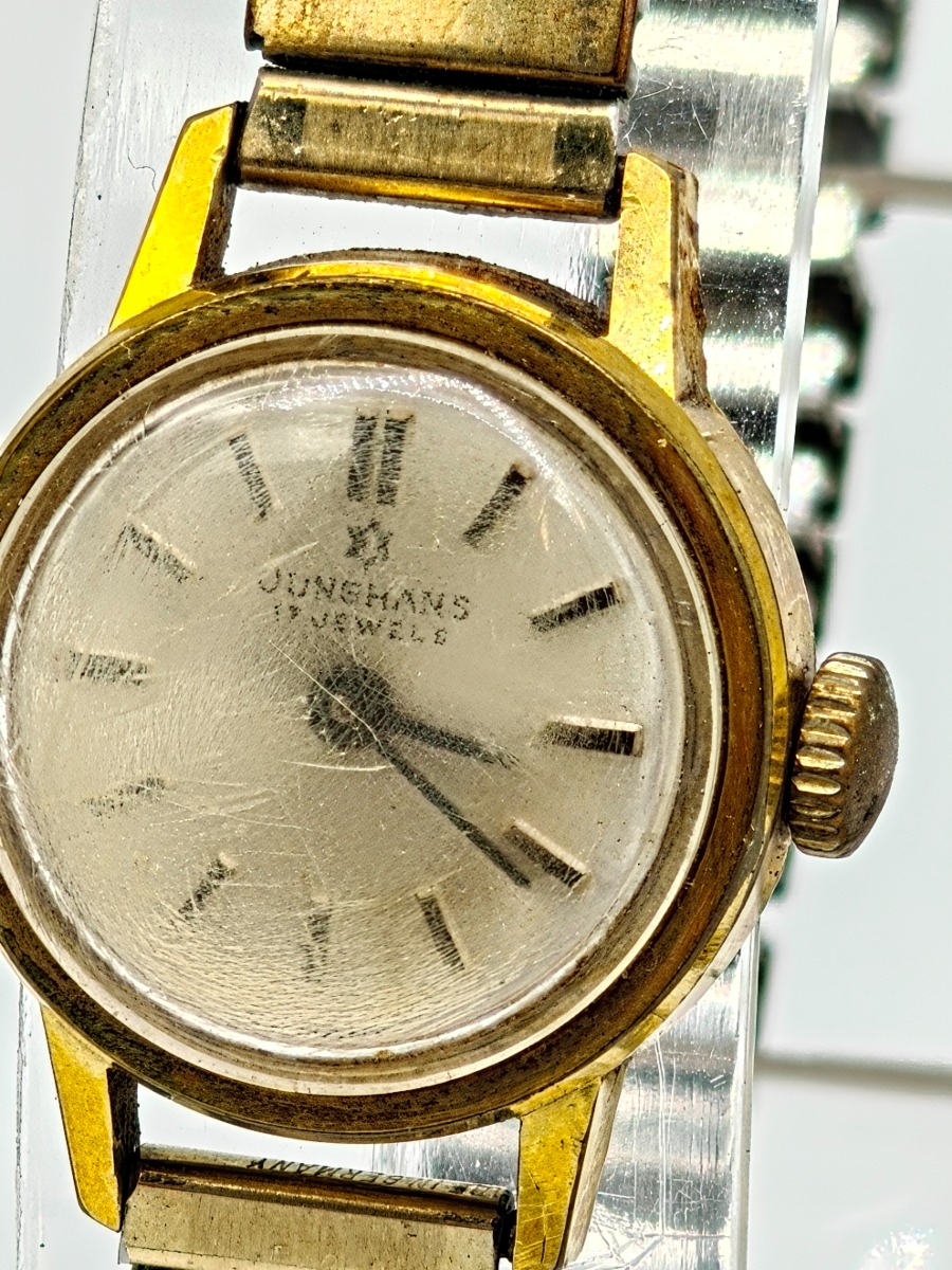 Vintage dame ure 5 stk. Junghans, 1 stk med lænke og 1 stk uden. Quartz med lænke, Rexor uden lænke samt Dugena. Trænger evt. til rens. Brugt.