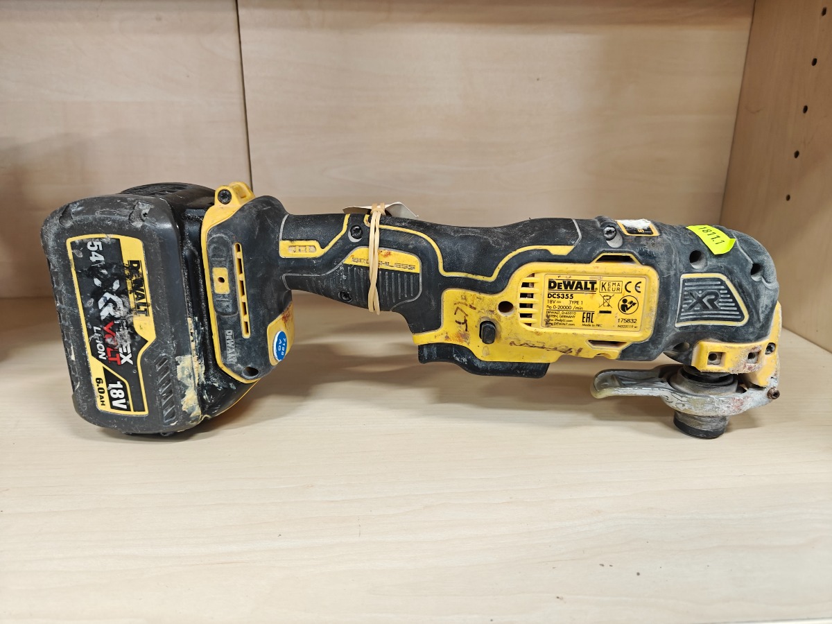 Dewalt DCS355 Aku multicutter med batteri. Med brugsspor. Vi garanterer ikke for funktionaliteten.